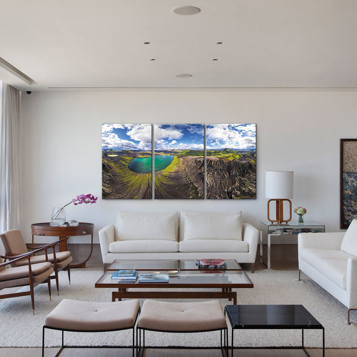 Printed on glossy acrylic in a dimensional split panel style with unique beveled aluminum edges, each piece this collection of dazzling nature photography features a float mount hanging system attached to the back to maintain the modern and clean look.