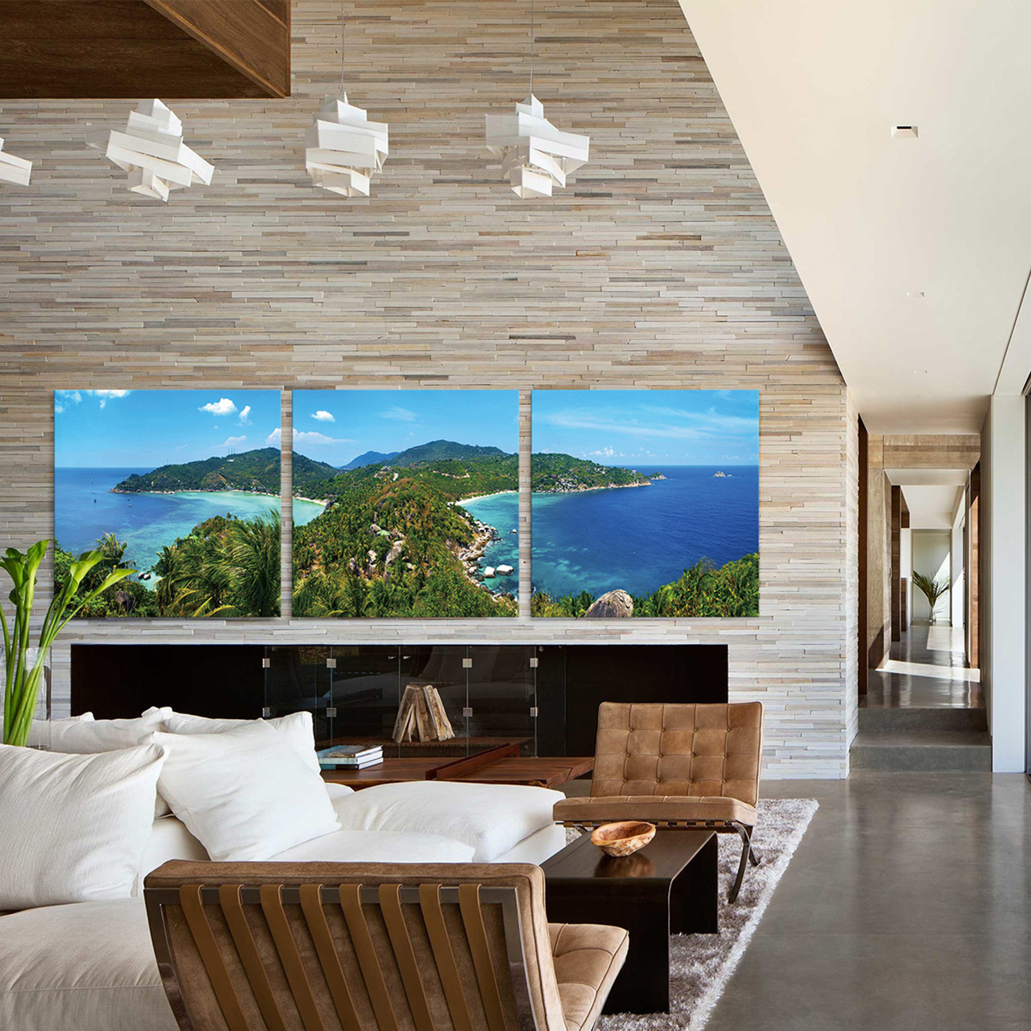 Printed on glossy acrylic in a dimensional split panel style with unique beveled aluminum edges, each piece this collection of dazzling nature photography features a float mount hanging system attached to the back to maintain the modern and clean look.