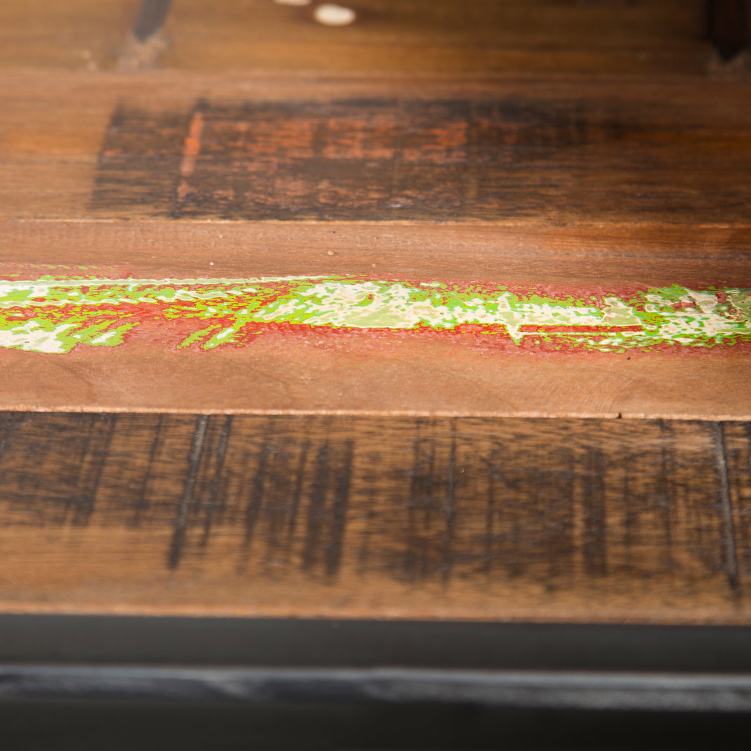 Having endured the natural elements for decades, each coffee table has unique plaint flecks, cracks and holes that were carefully preserved. This solid table is the perfect addition to any cool, fashionable living room or den.