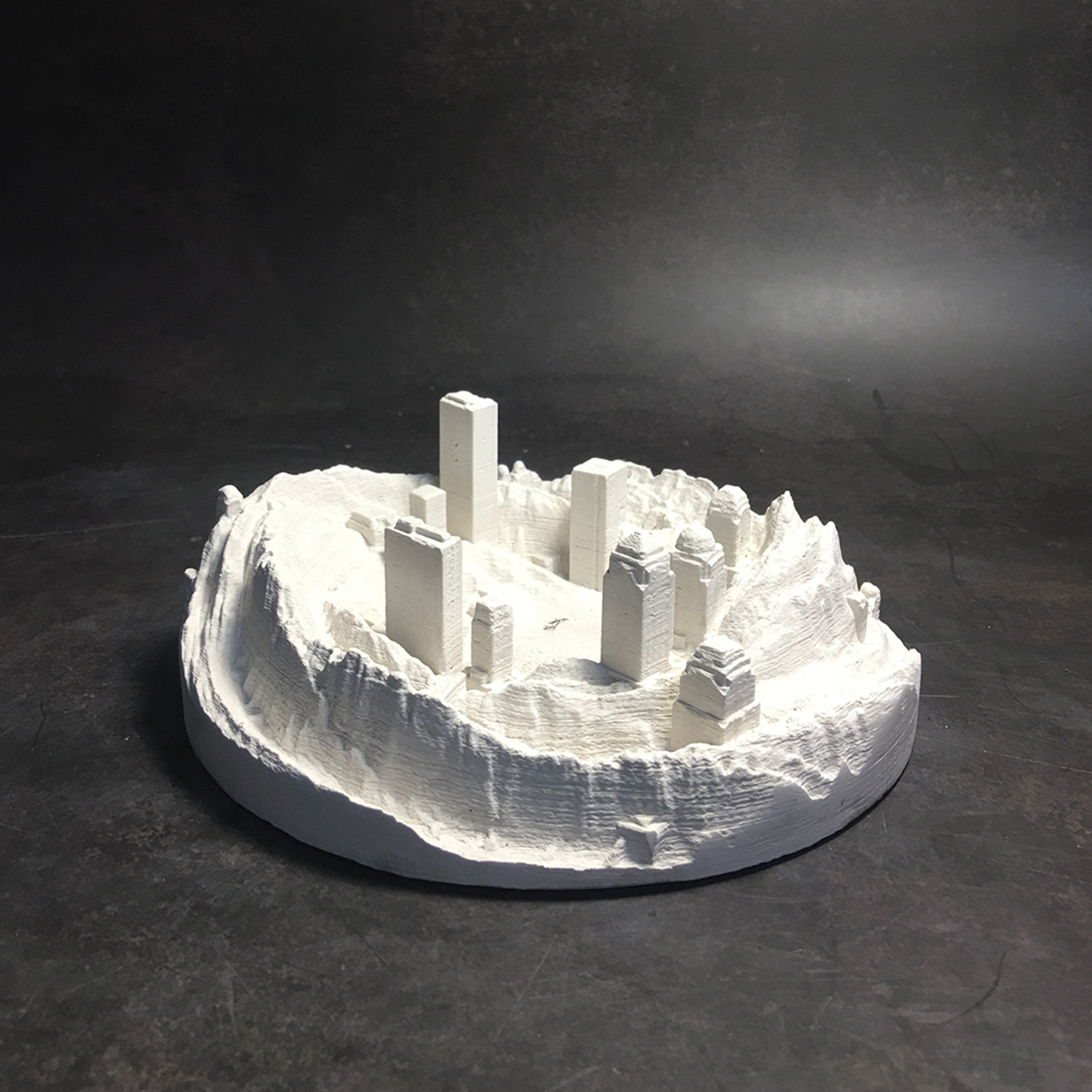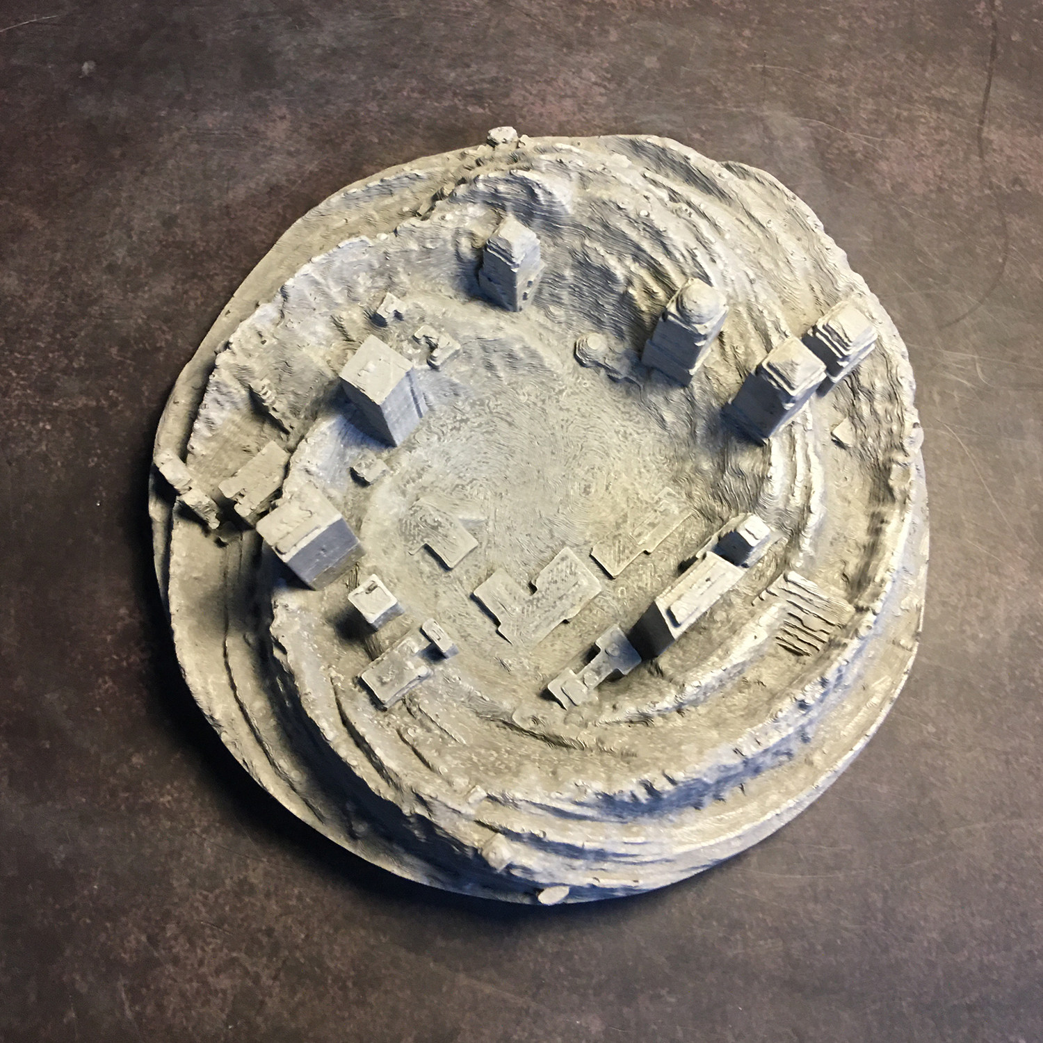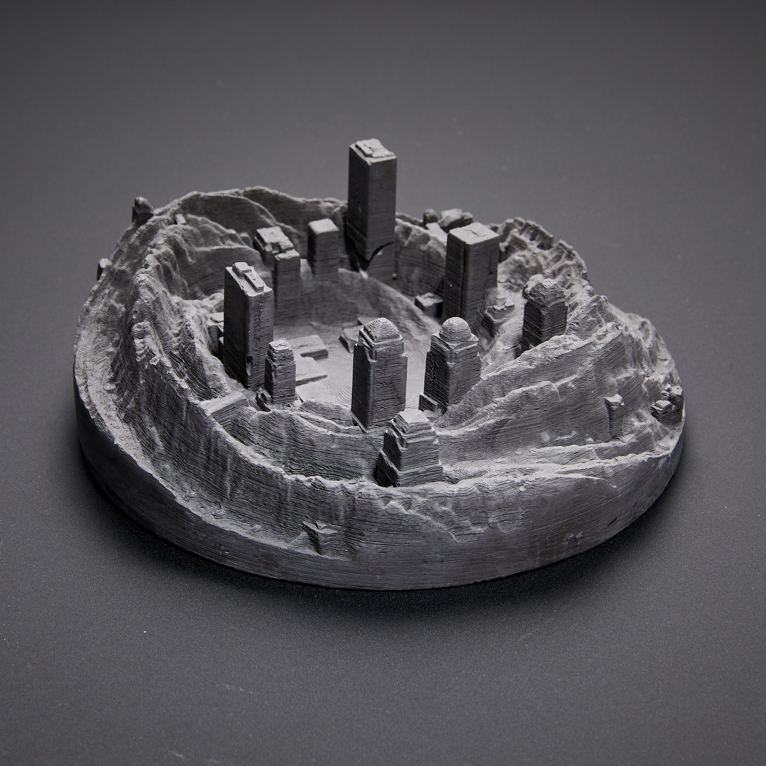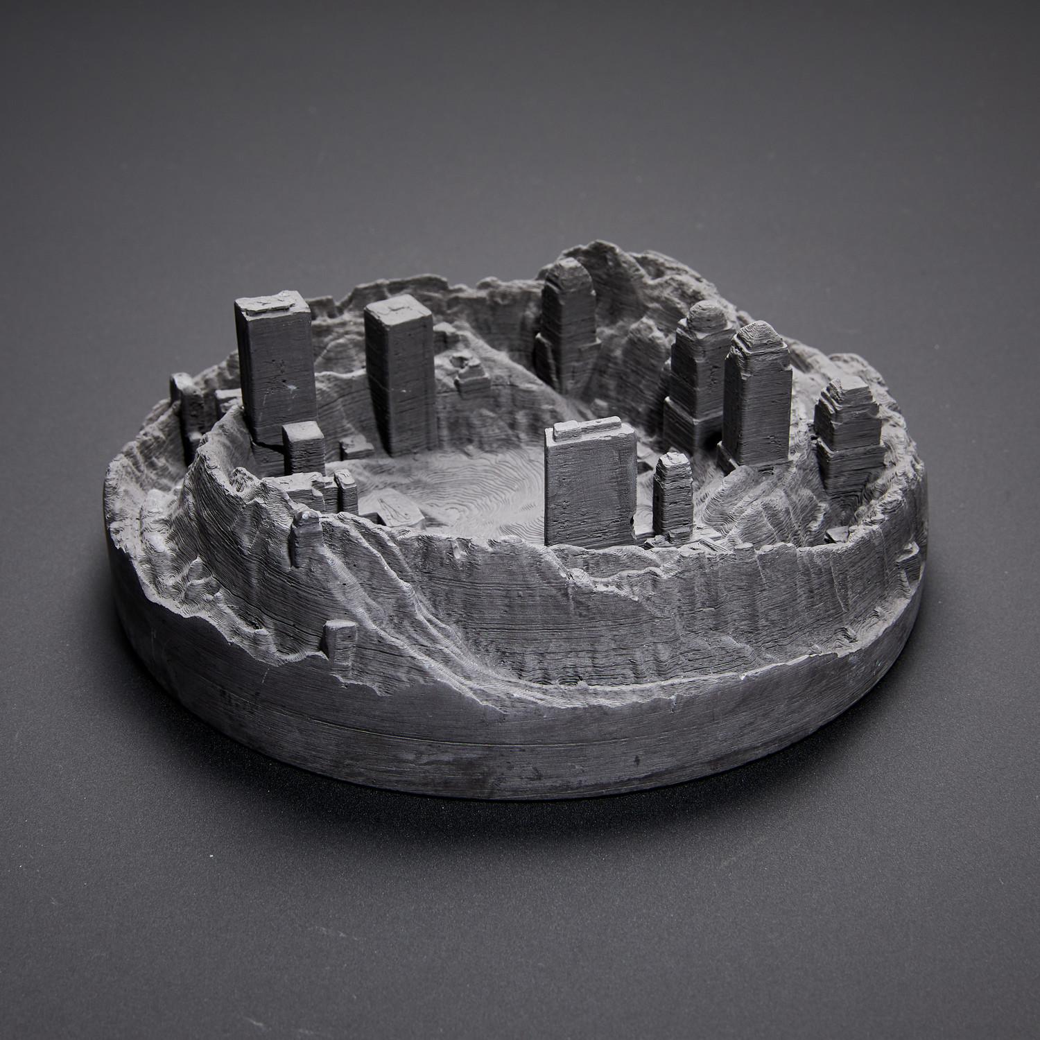 Artistic, reflective, and timeless, Artsmoon creates functional works of art. Each piece reinterprets the nature of concrete, typically a purely practical material, to create table top-sized landscapes and cities. Use it as an ash tray, a bit of accent decor, or a diffuser stone with a few drops of your favorite essential oil.