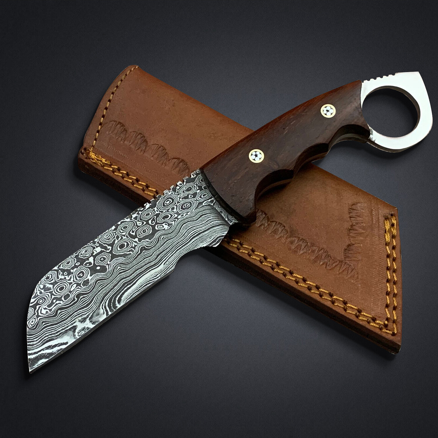 This is your right hand on the hunt, on the job, or on the go. This knife is tough as nails, and gorgeous to boot. The beautiful knife comes with a razor sharp cutting edge and a leather sheath.