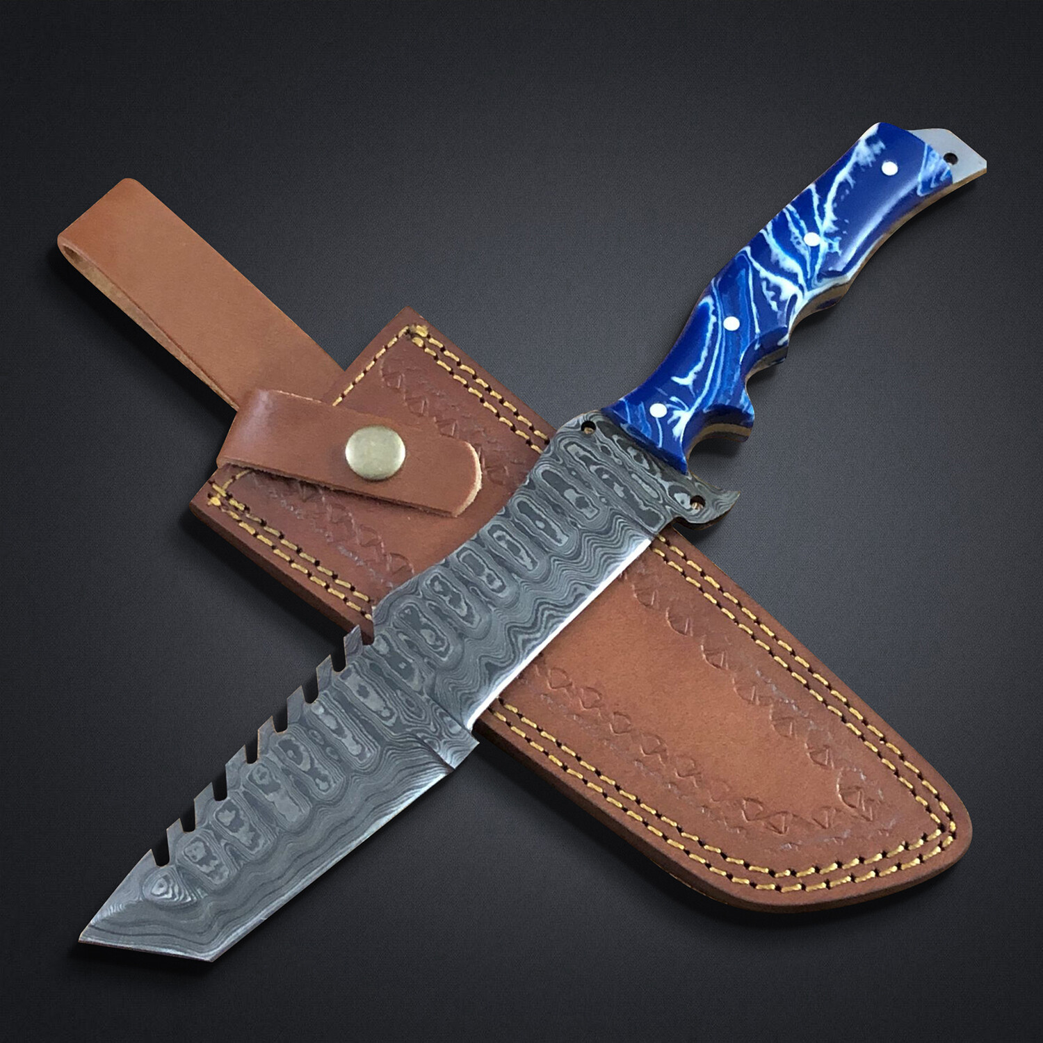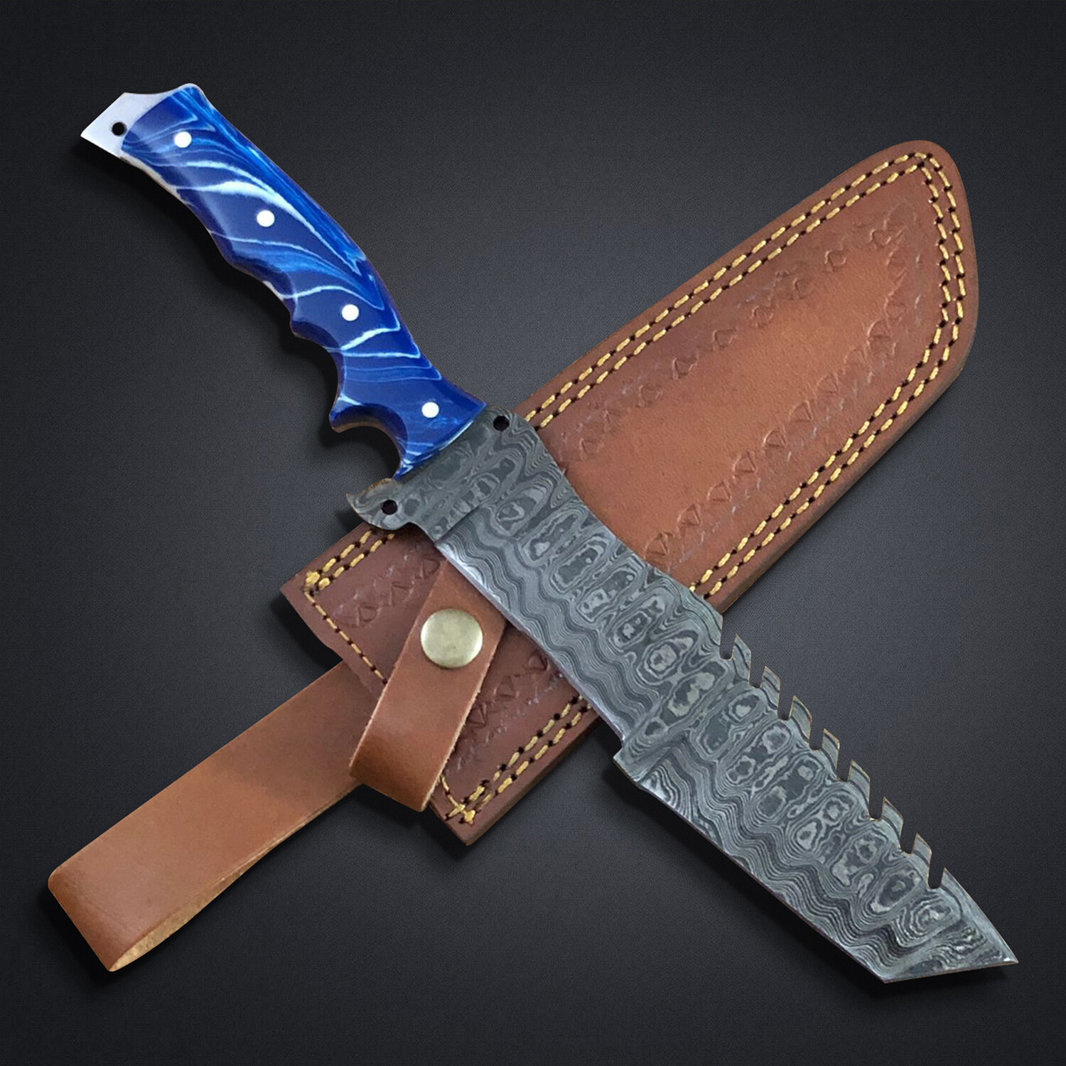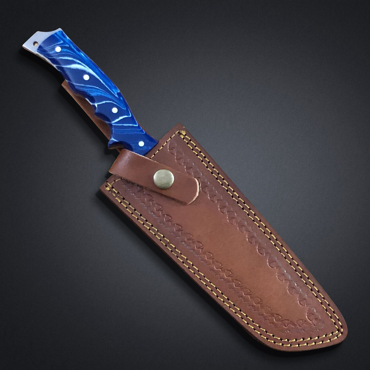 This is your right hand on the hunt, on the job, or on the go. This knife is tough as nails, and gorgeous to boot. The beautiful knife comes with a razor sharp cutting edge and a leather sheath.