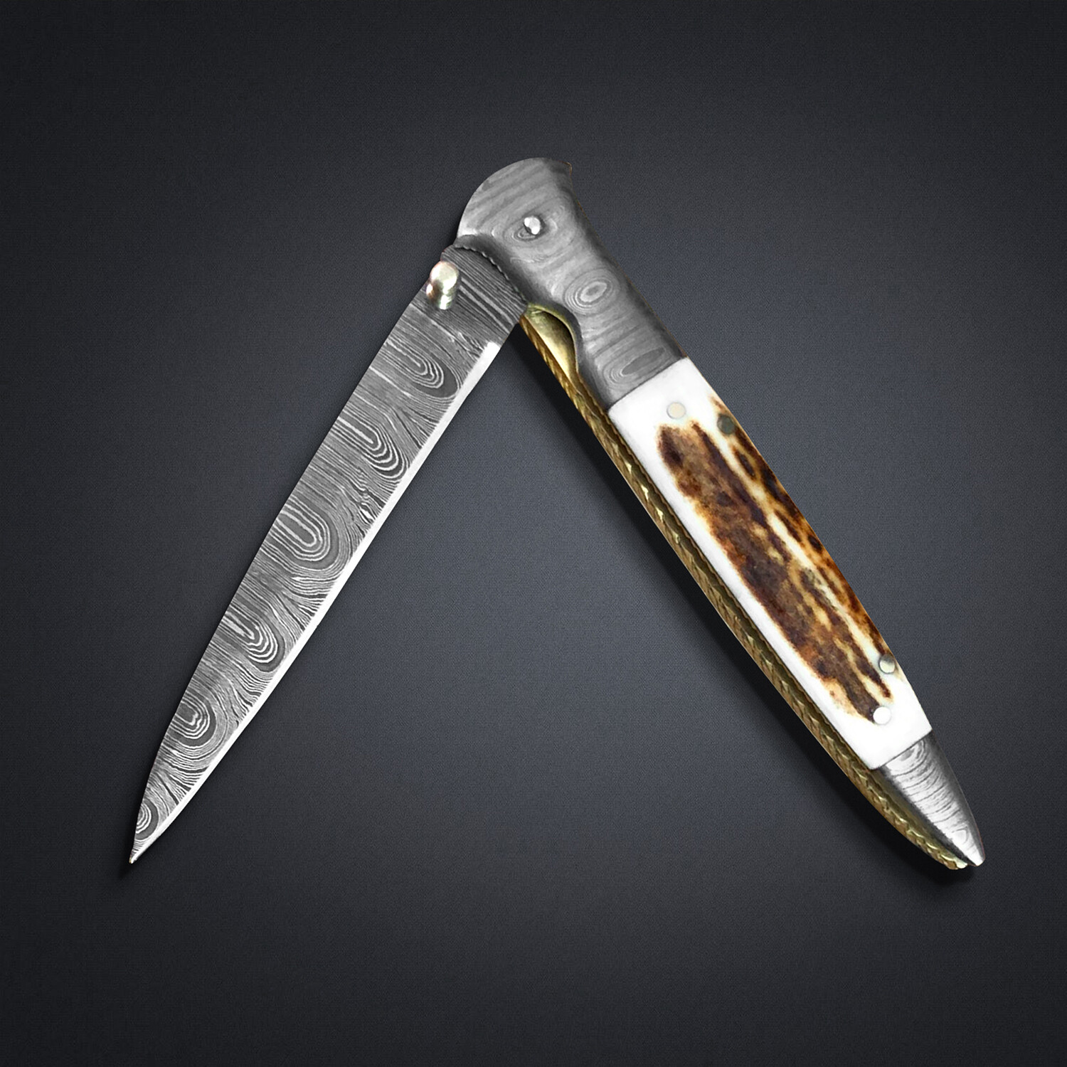 This is your right hand on the hunt, on the job, or on the go. This knife is tough as nails, and gorgeous to boot. The beautiful knife comes with a razor sharp cutting edge and a leather sheath.