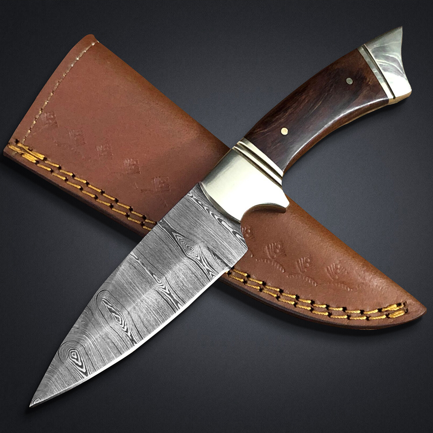 This is your right hand on the hunt, on the job, or on the go. This knife is tough as nails, and gorgeous to boot. The beautiful knife comes with a razor sharp cutting edge and a leather sheath.