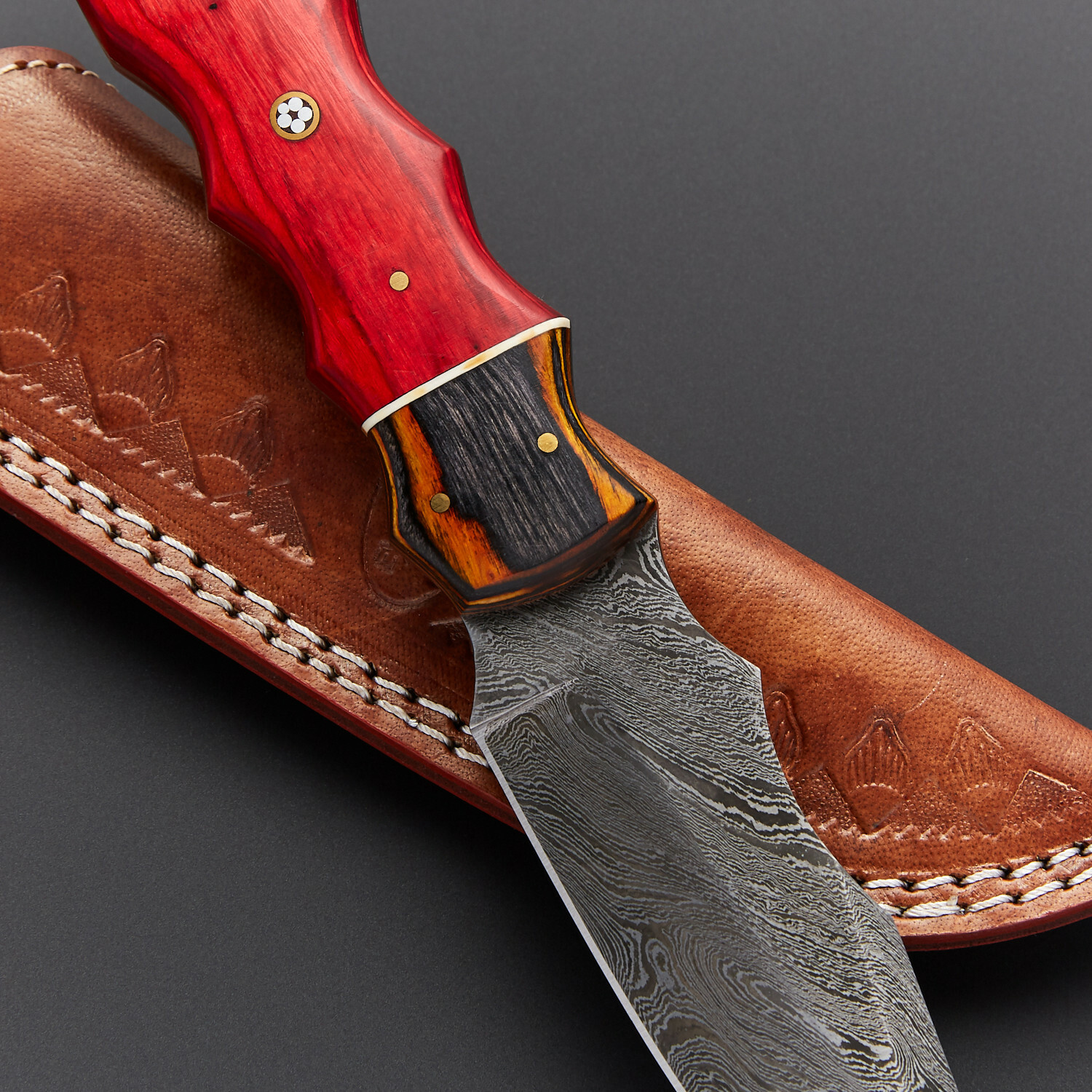 This is your right hand on the hunt, on the job, or on the go. This knife is tough as nails, and gorgeous to boot. The beautiful knife comes with a razor sharp cutting edge and a leather sheath.