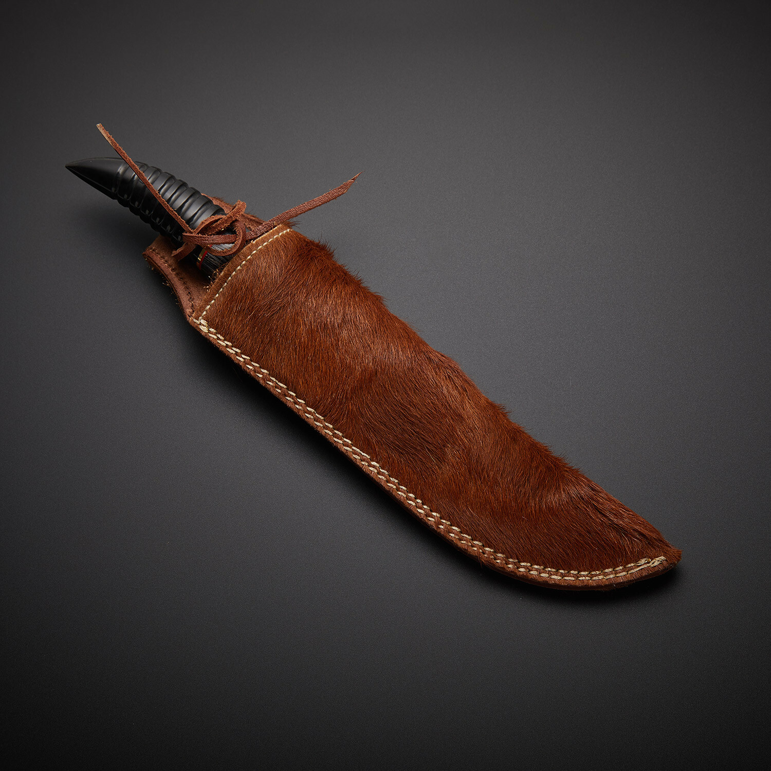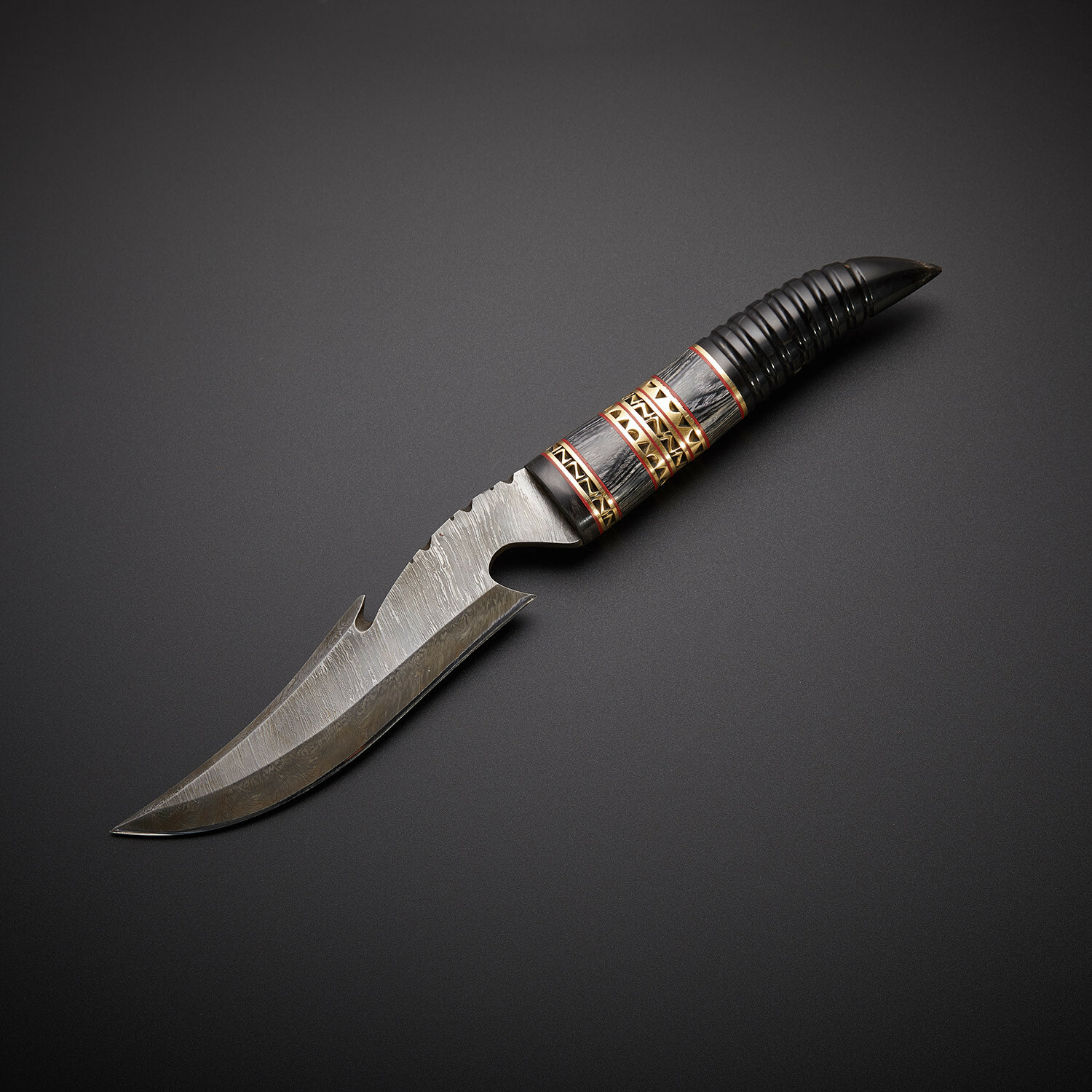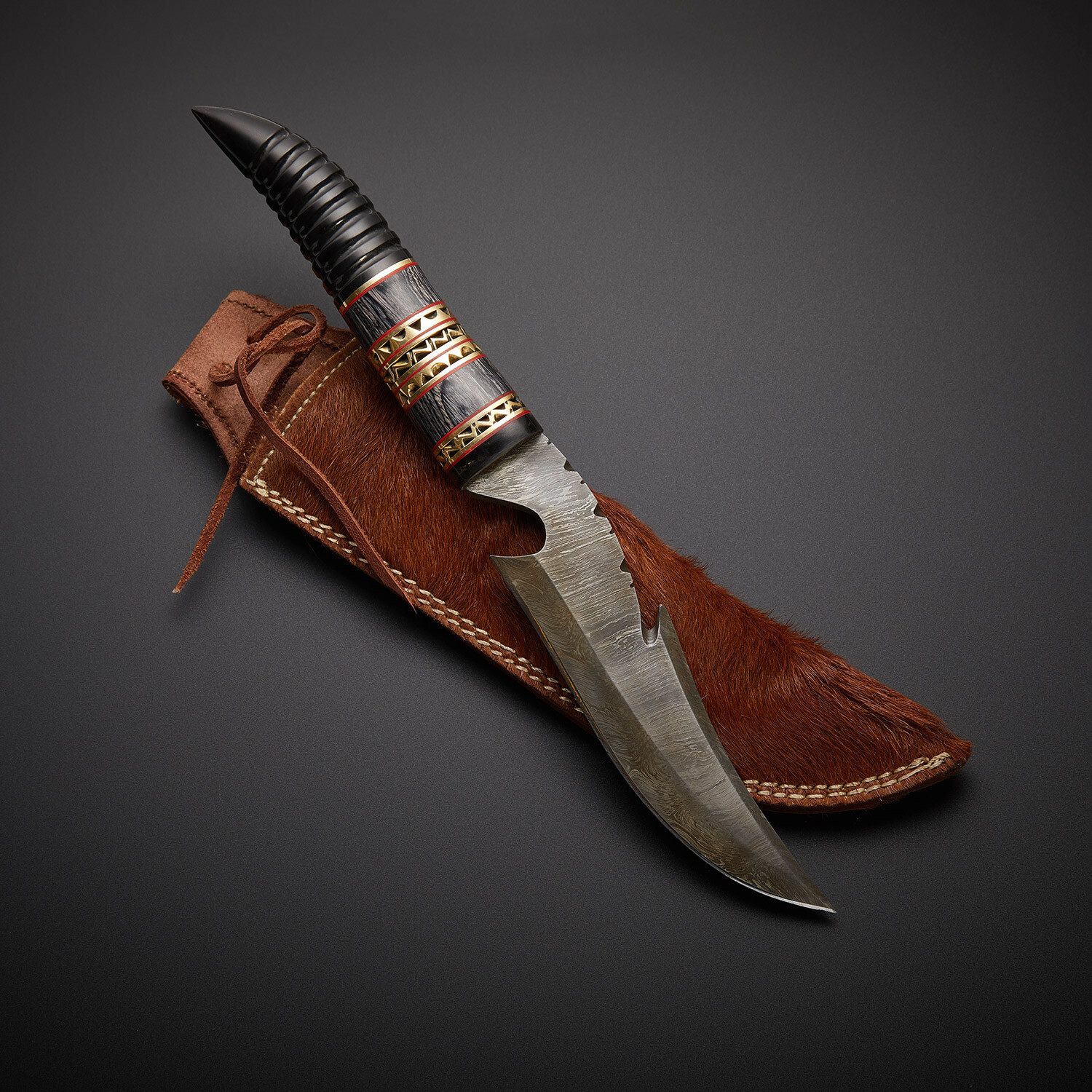— Handle Material: Black Bull Horn, Brass, Fiber Spacers
