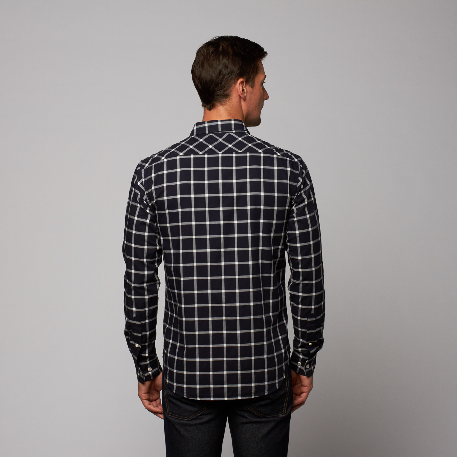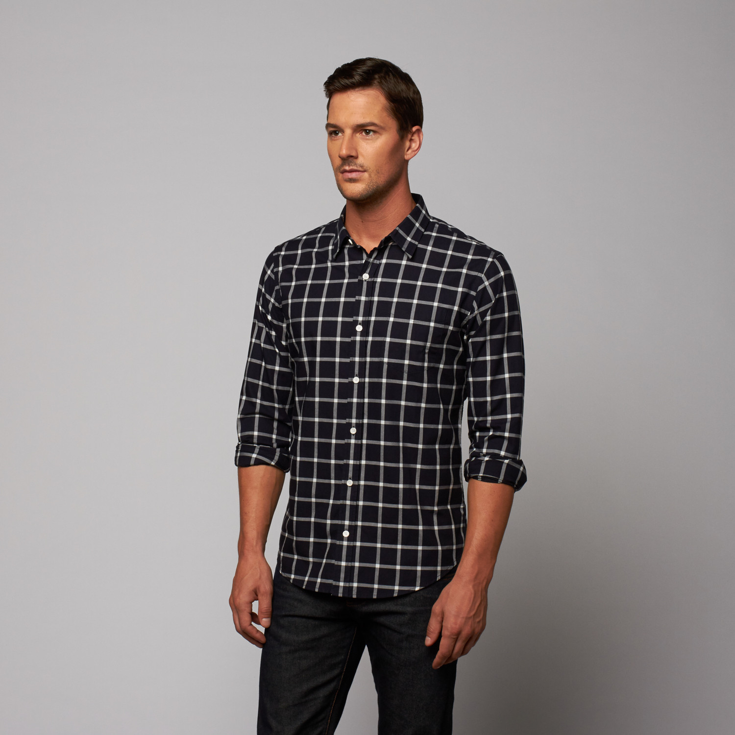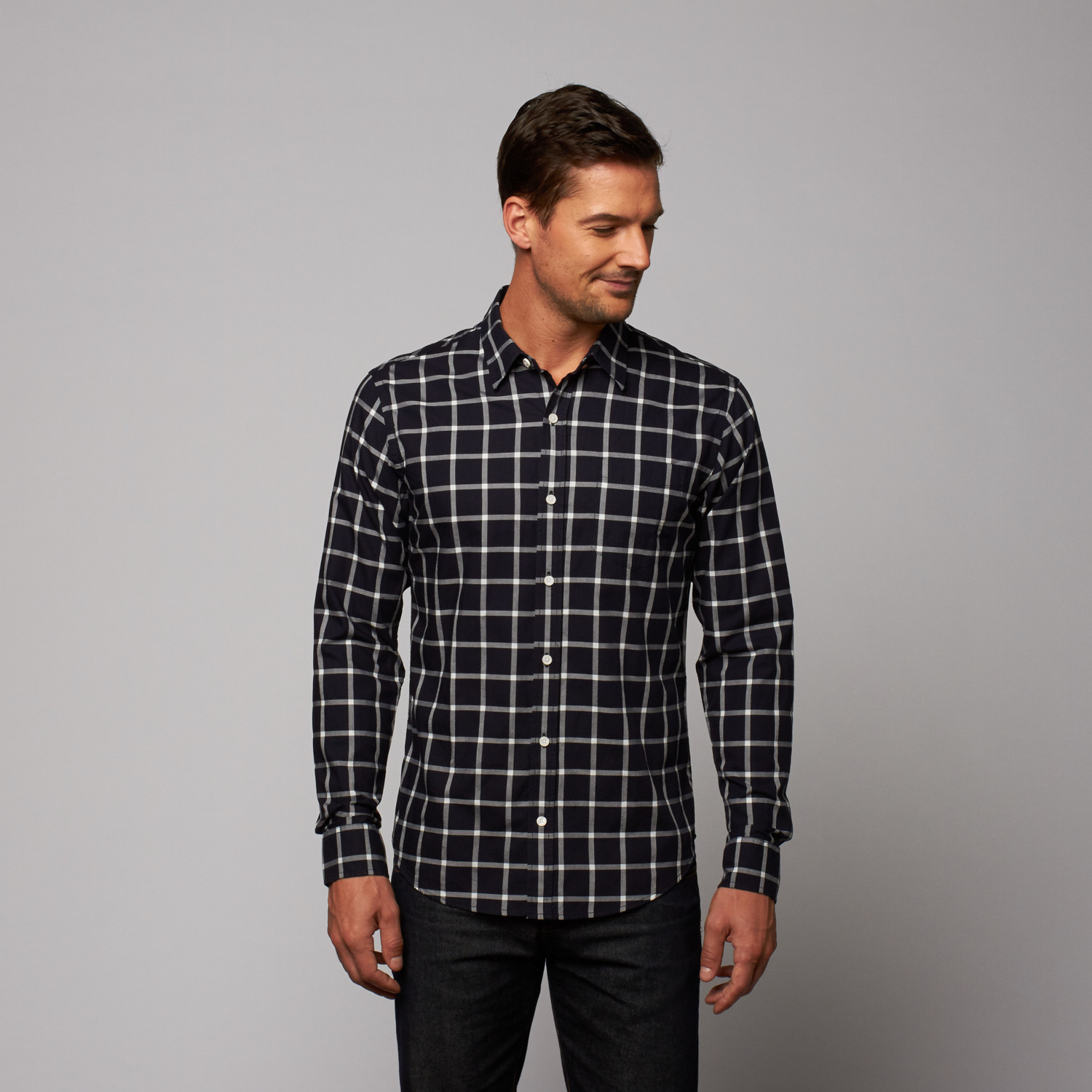 A classic that's perfect for work, the Window to the World Shirt is all about order. A navy and white windowpane check is perfect for pairing under camel, grey, and black suiting.
