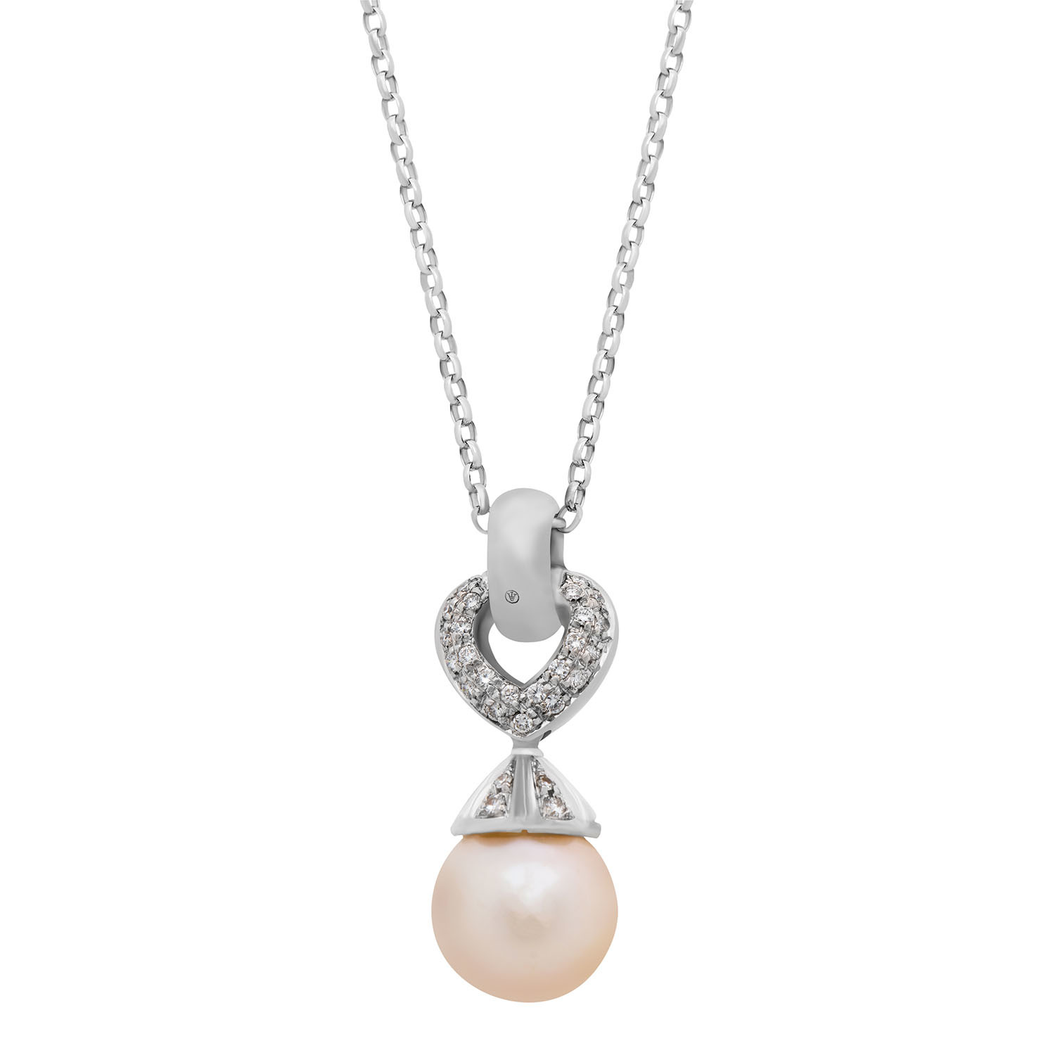 Assael // 18k White Gold Diamond + Pearl Pendant // 15.75"