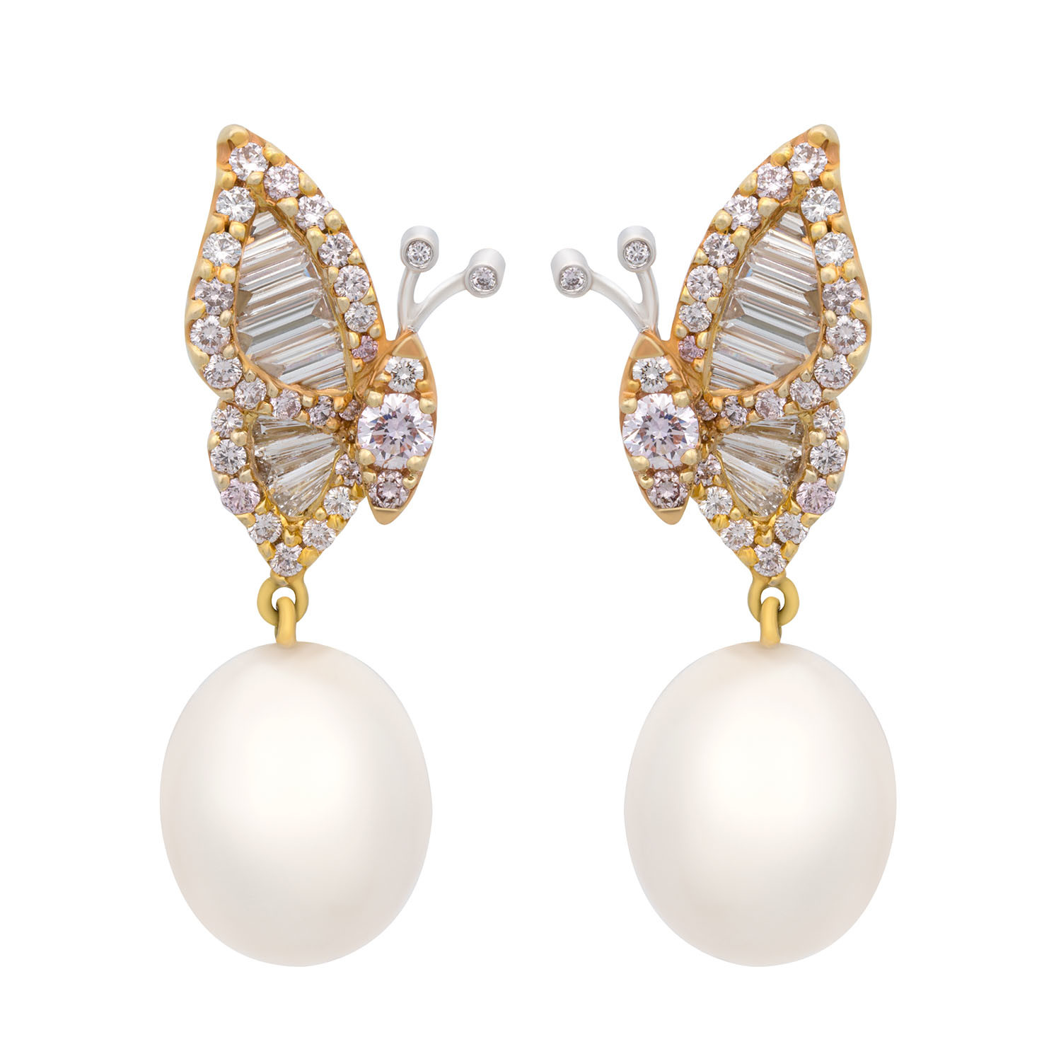 18k White + Rose Gold Diamond + South Sea Pearl Earrings // Store Display