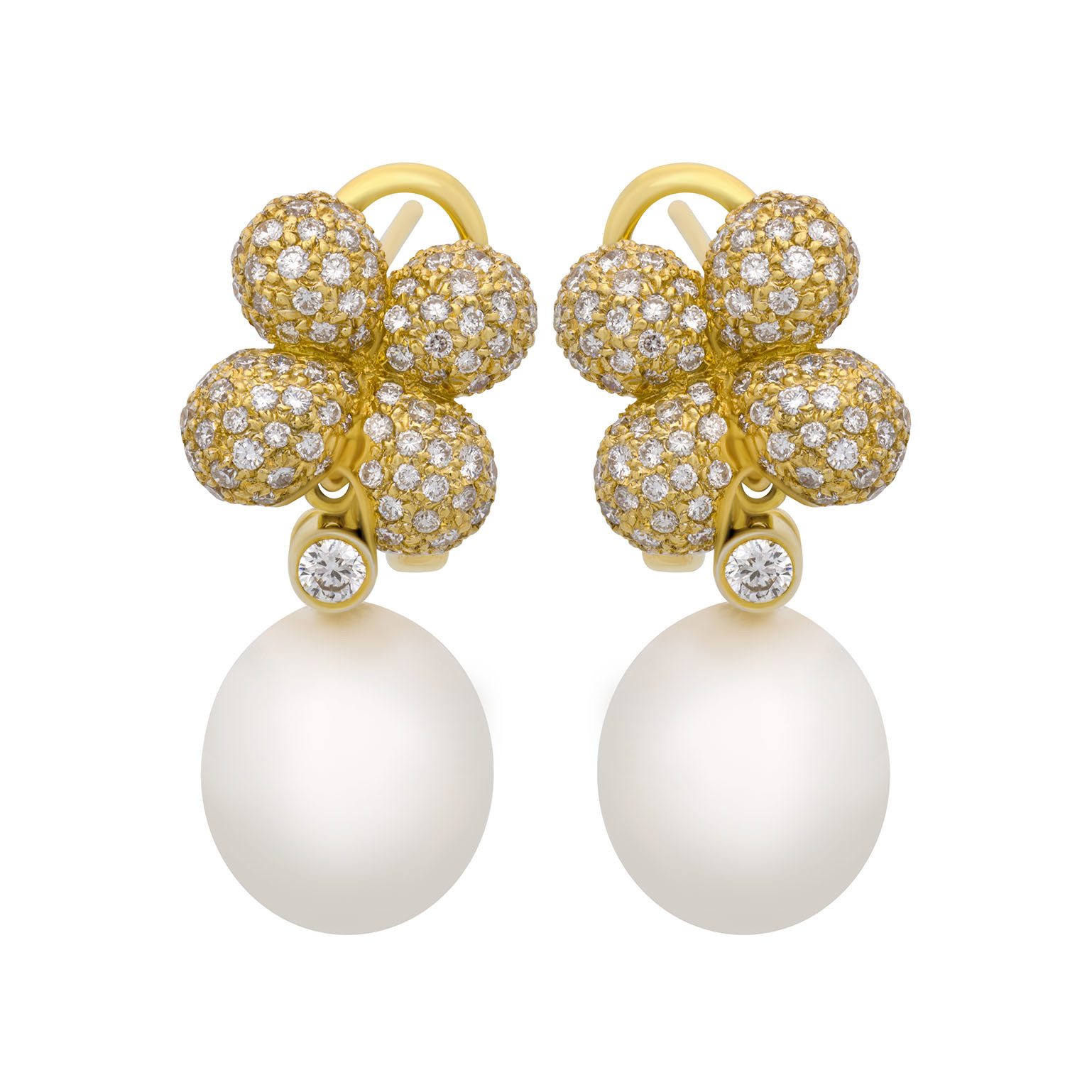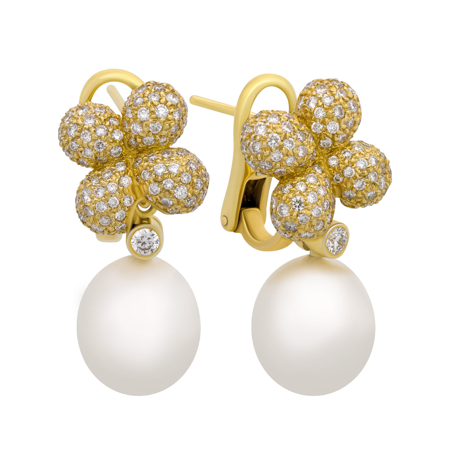 Assael 18k Yellow Gold Diamond + South Sea Pearl Earrings I // Store Display
