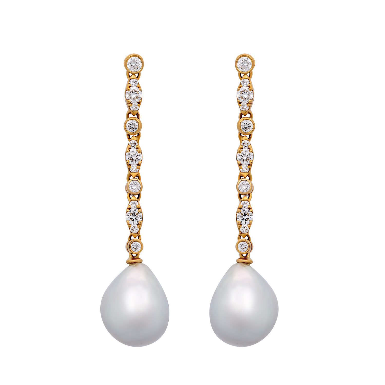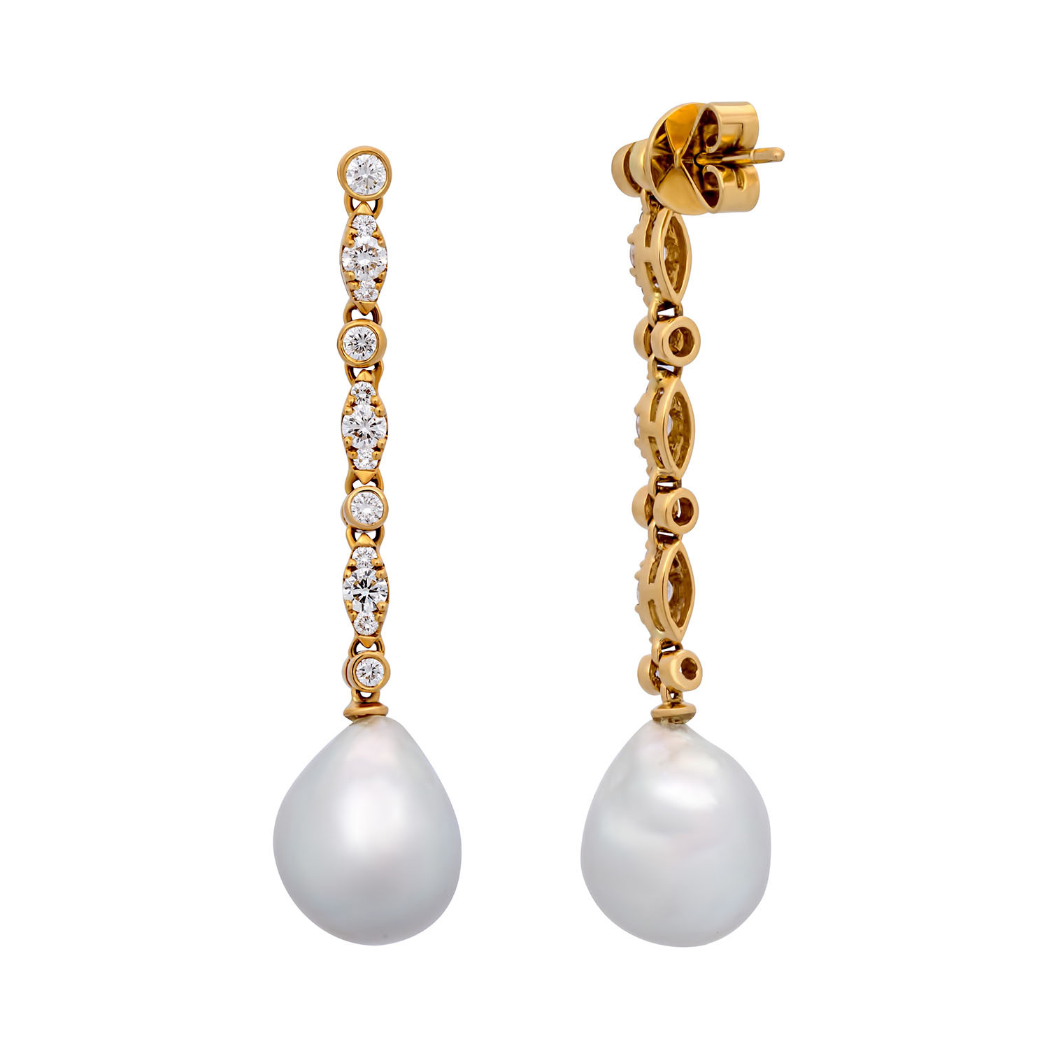 Assael 18k Yellow Gold Diamond + South Sea Pearl Earrings II // Store Display