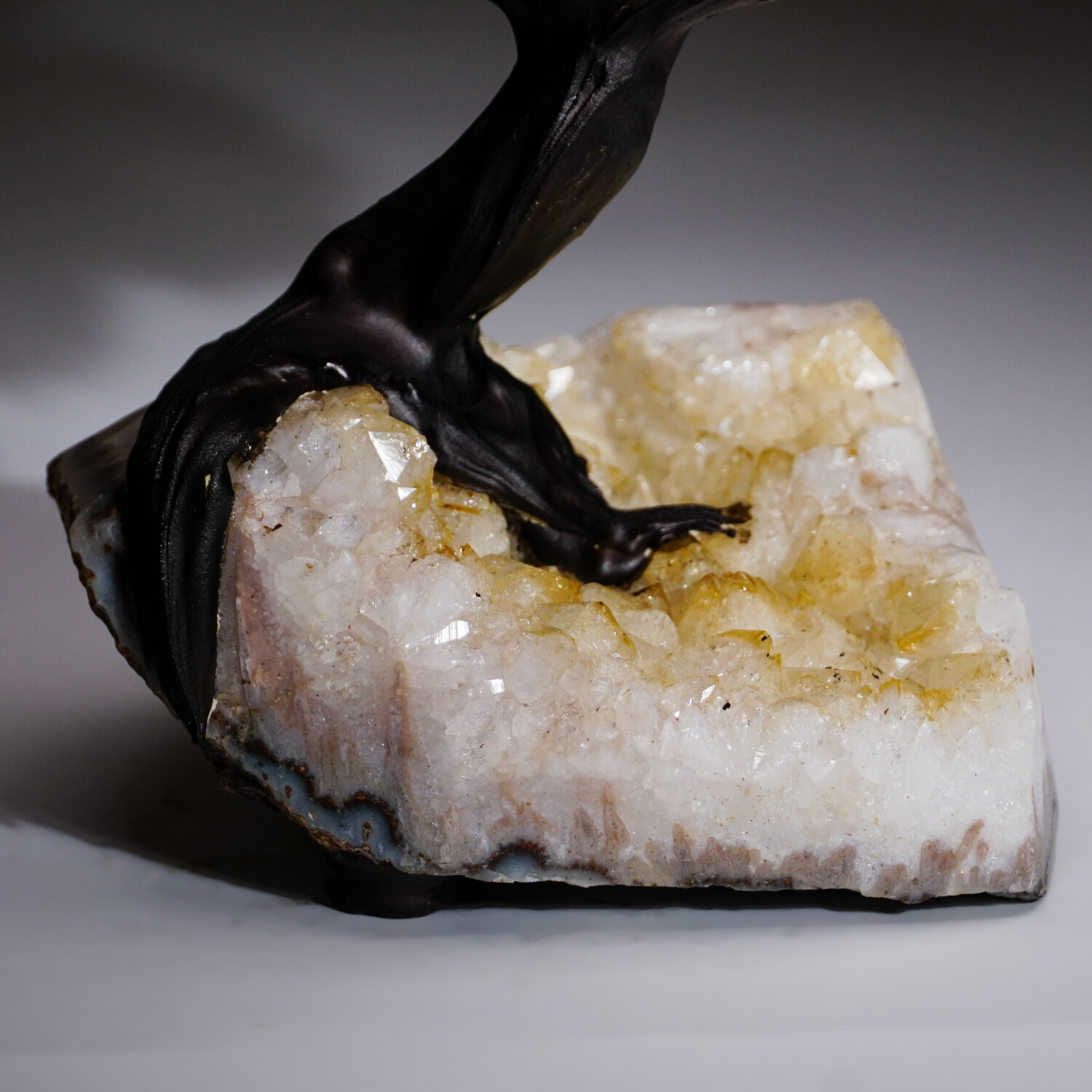 Custom Genuine Citrine clustered gemstone tree with faux tree trunk set on a Citrine matrix - handmade in Brazil. "The Calming Tree" makes for a great gift and a beautiful display item in any room. Citrine is the stone that calms anger. It breaks up energy blocks in the body and with its Citrine leaves and matrix together, strengthens will, vision and balance.