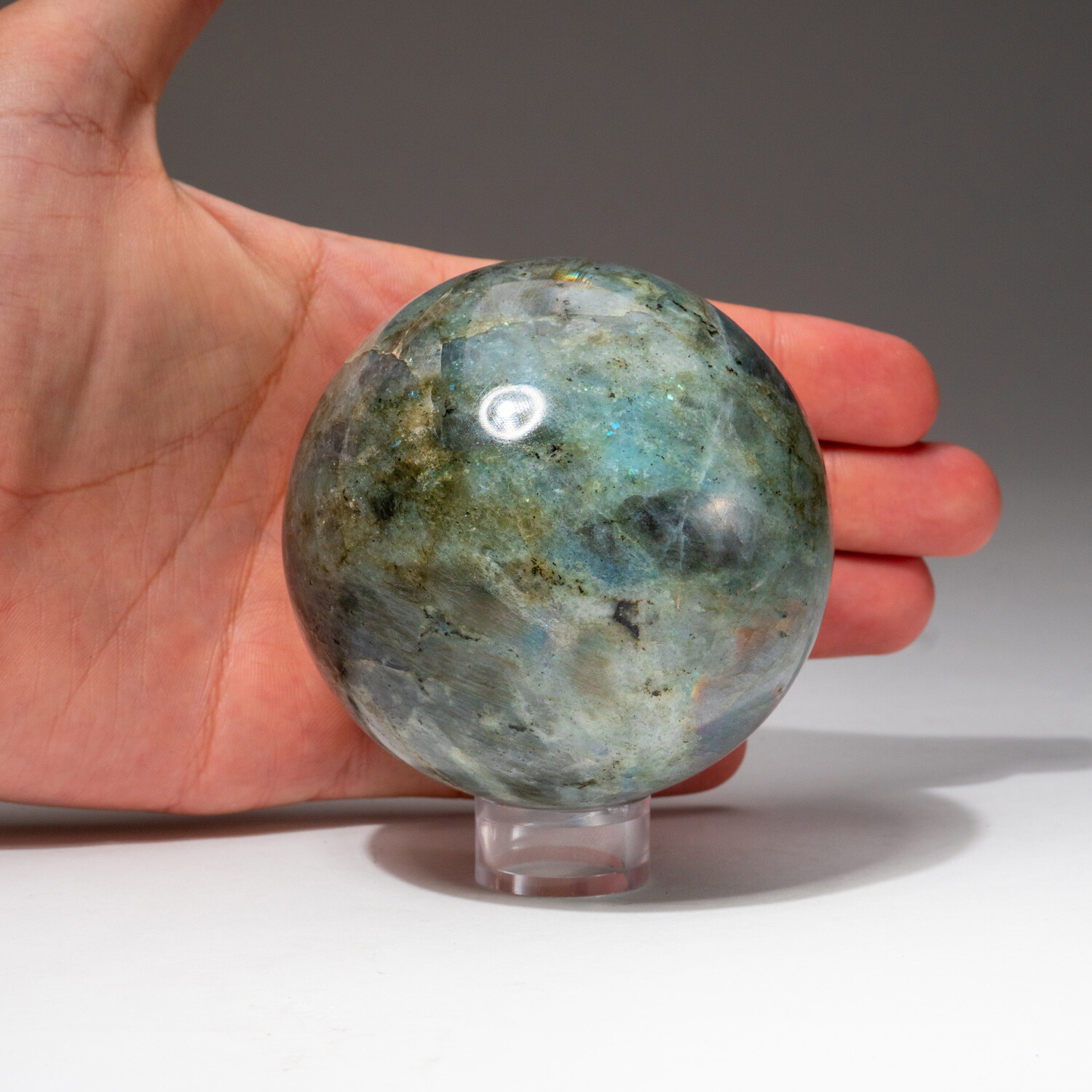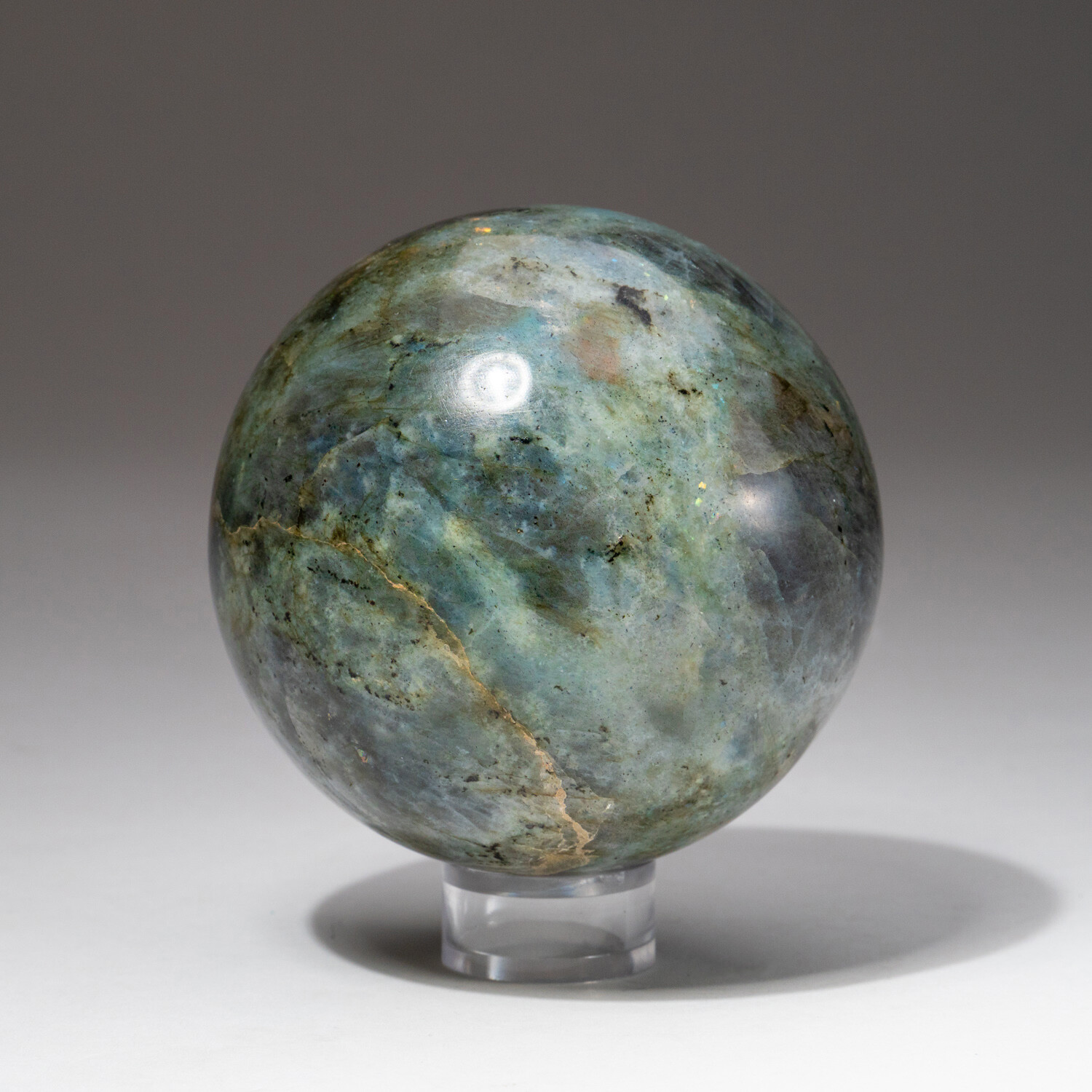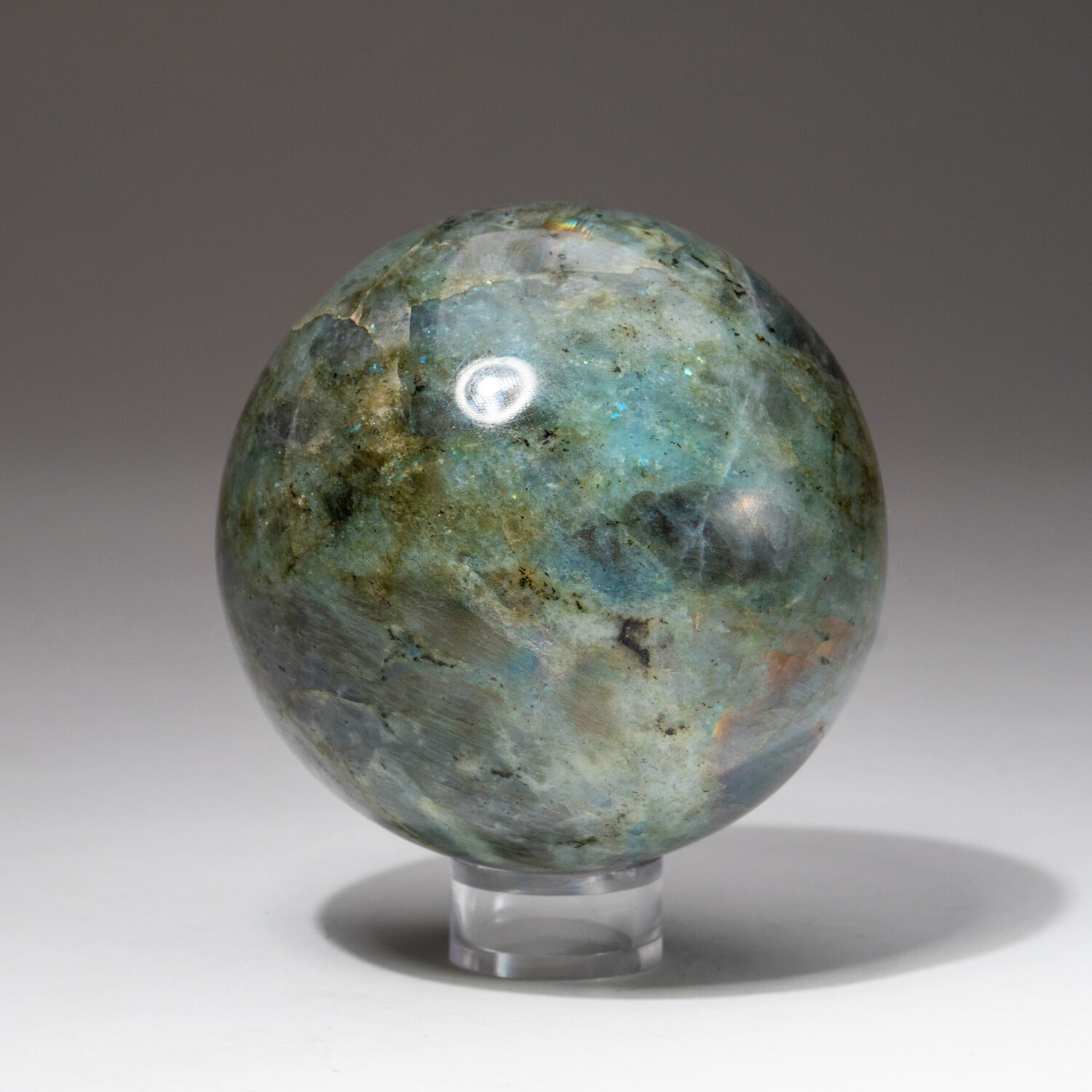 Genuine Polished Labradorite Sphere + Acrylic Display Stand // V1