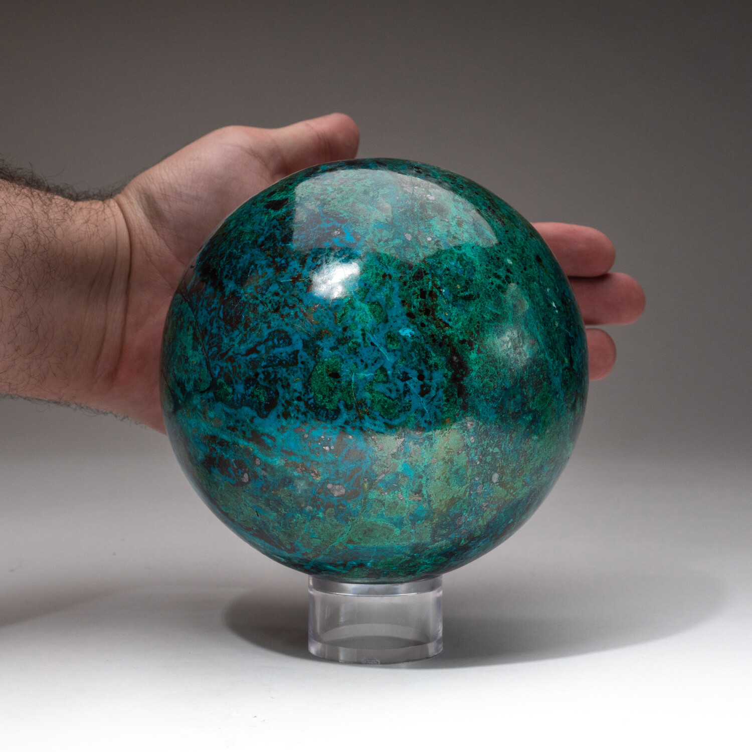 Giant Genuine Polished Gemmy Chrysocolla Sphere + Acrylic Display Stand // V5