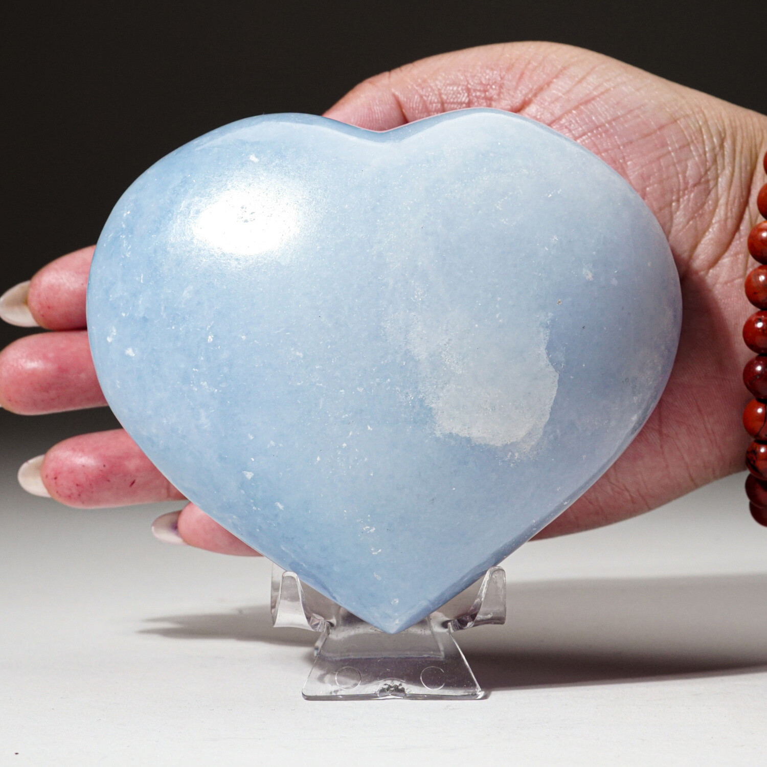 Genuine Polished Blue Calcite Heart With Acrylic Display Stand