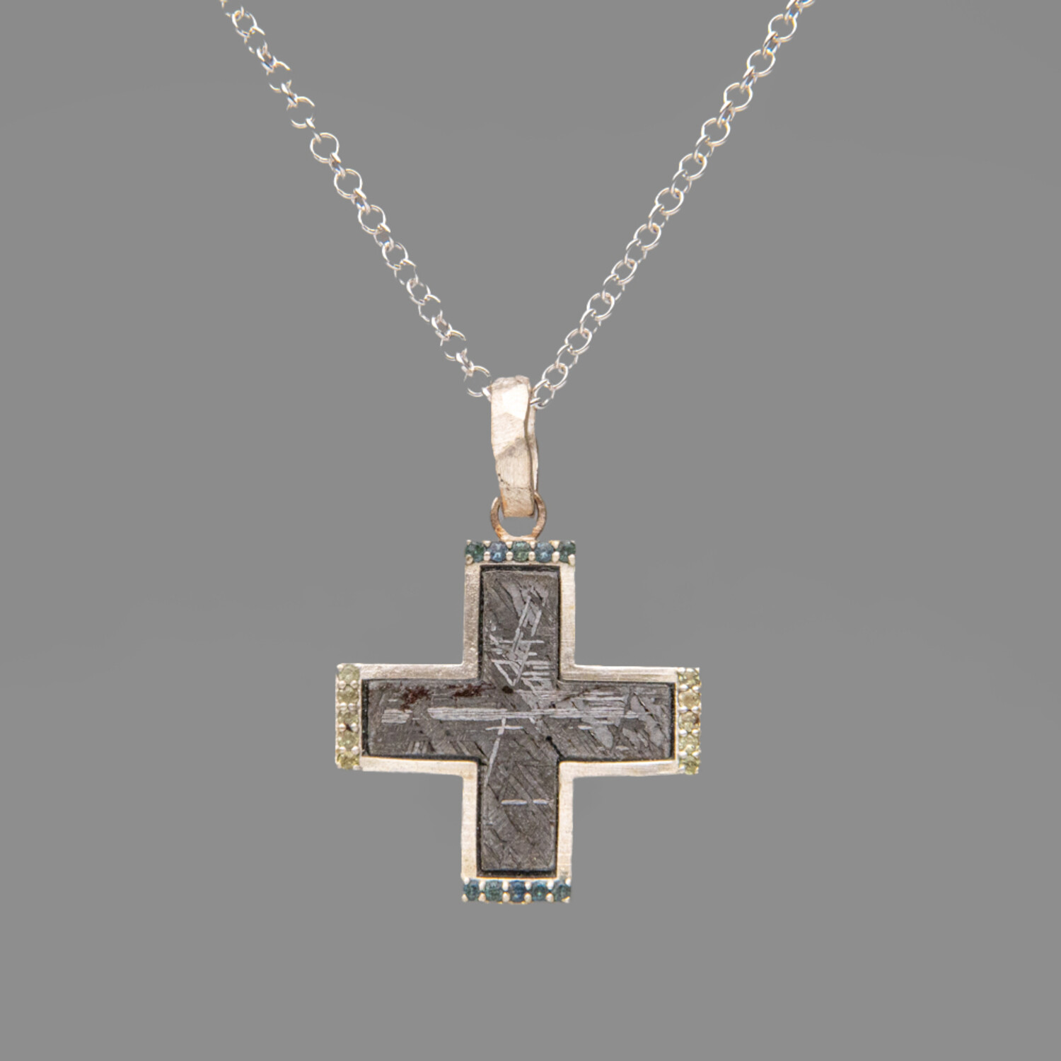 Genuine Muonionalusta Meteorite Cross Pendant (15gr.) + 18" Sterling Necklace