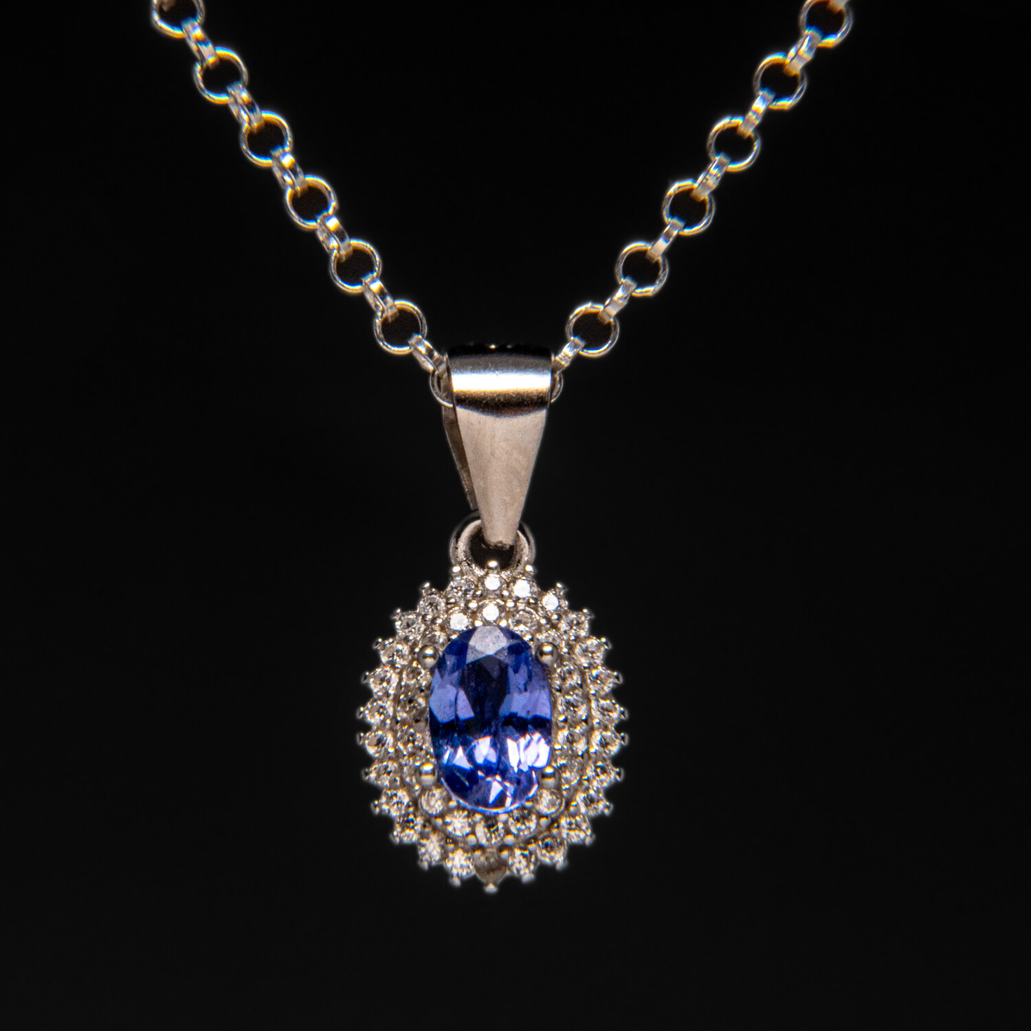 Sterling Silver Tanzanite Gemstone Pendant + 18" Sterling Chain // Oval