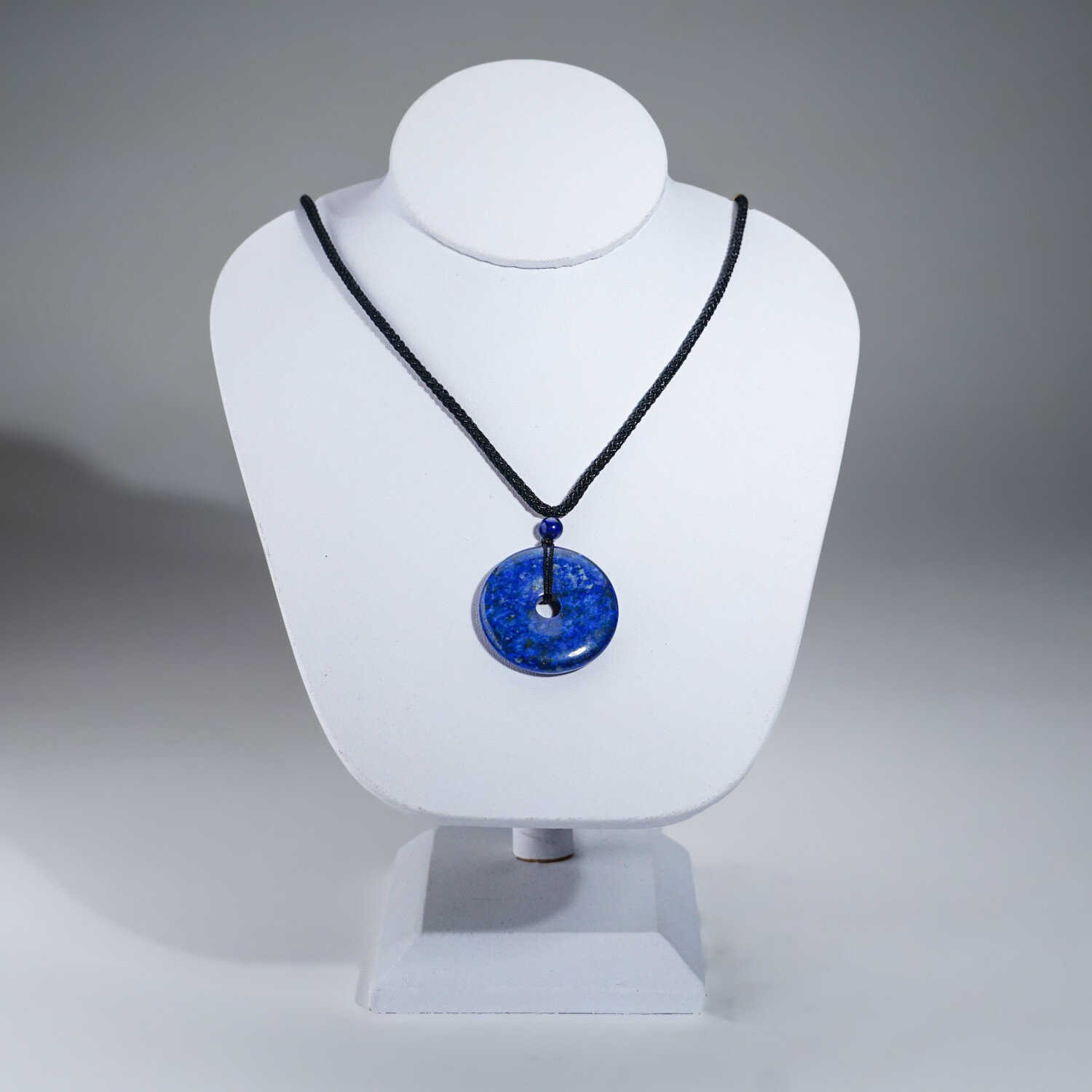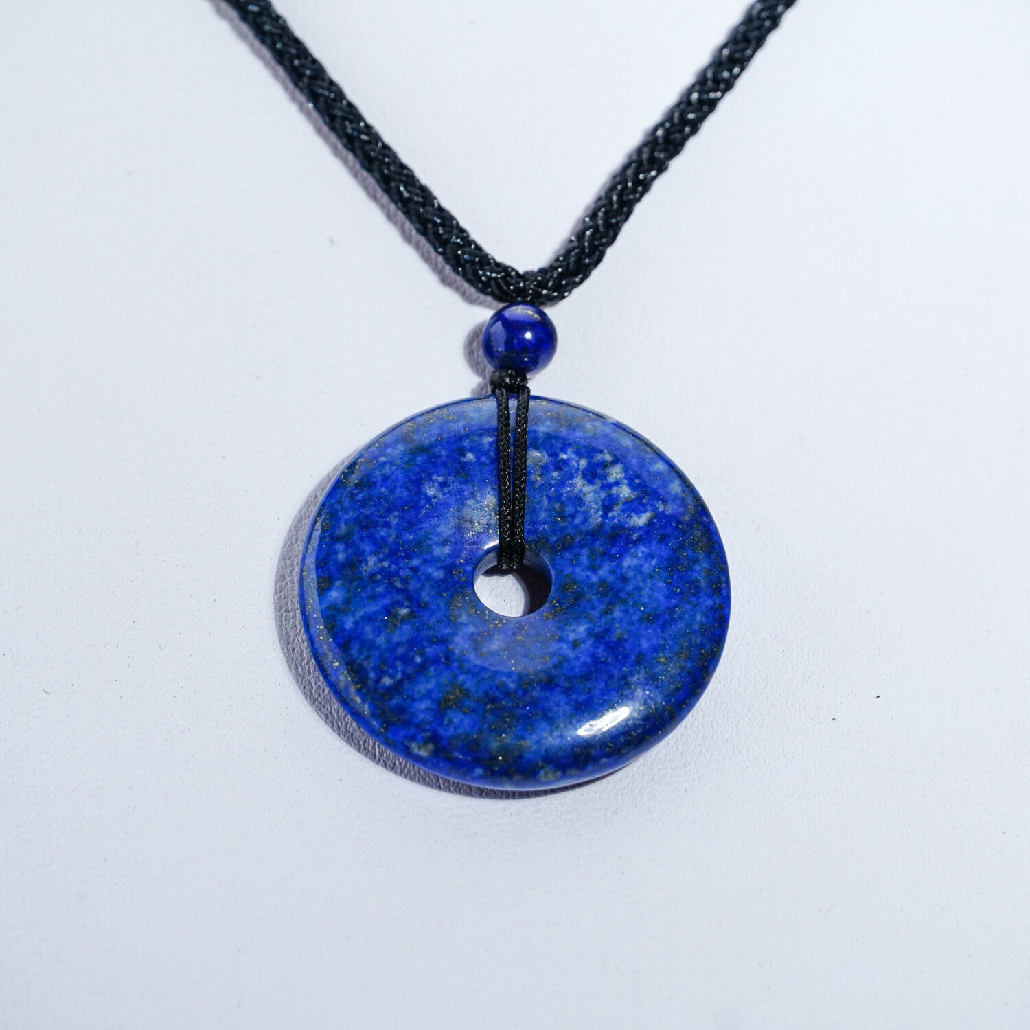 Genuine Round Lapis Lazuli Pendant with Adjustable length Black Cord // 17.1g