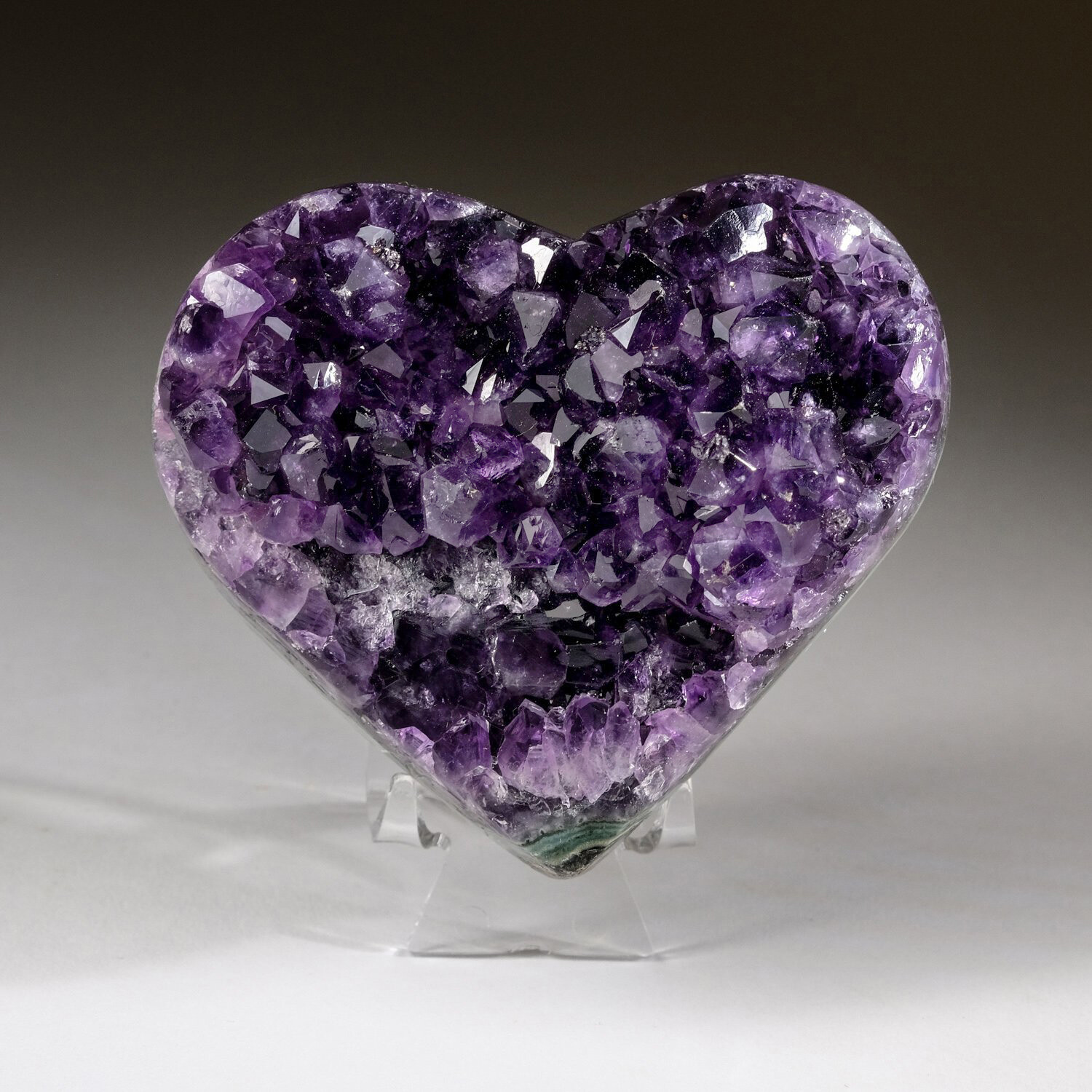 Genuine Amethyst Crystal Cluster Heart + Acrylic Display Stand