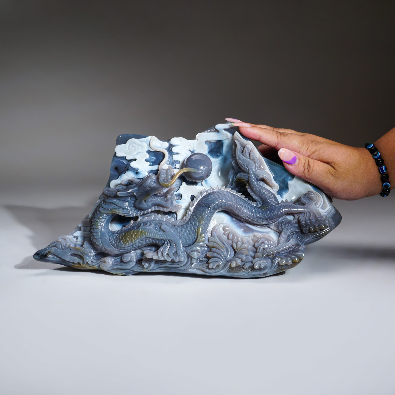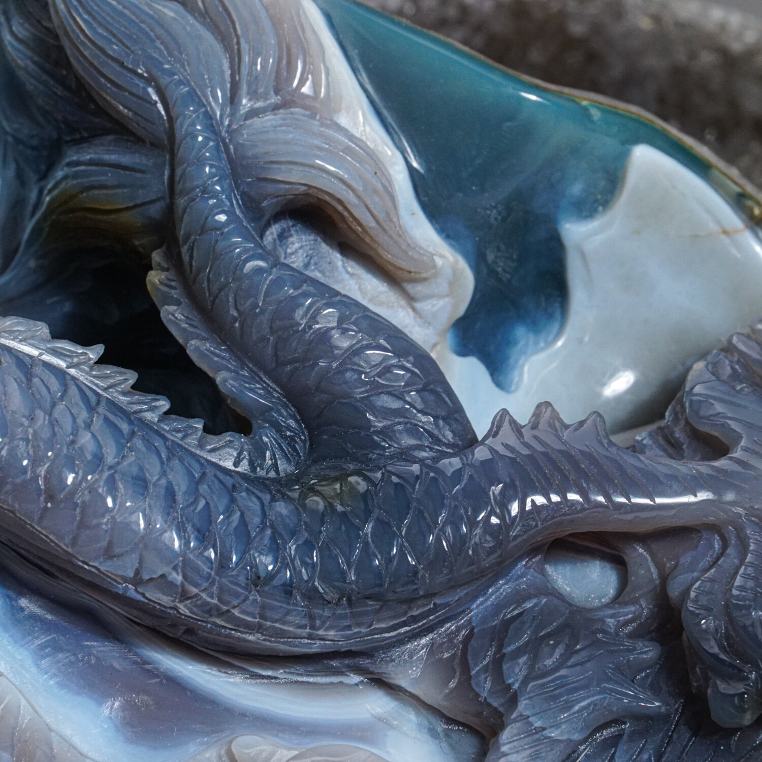 Genuine Polished Agate Druzy Hand Carved Dragon