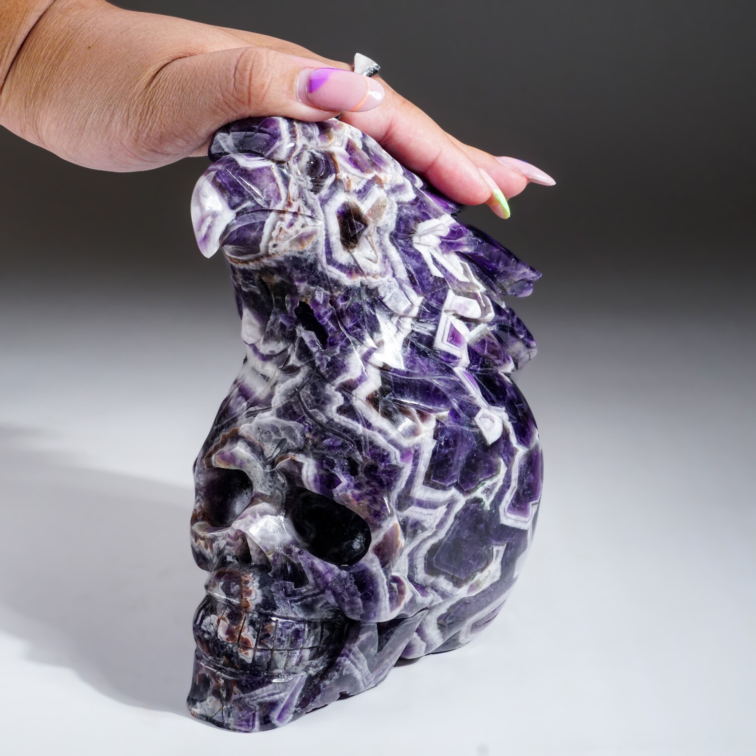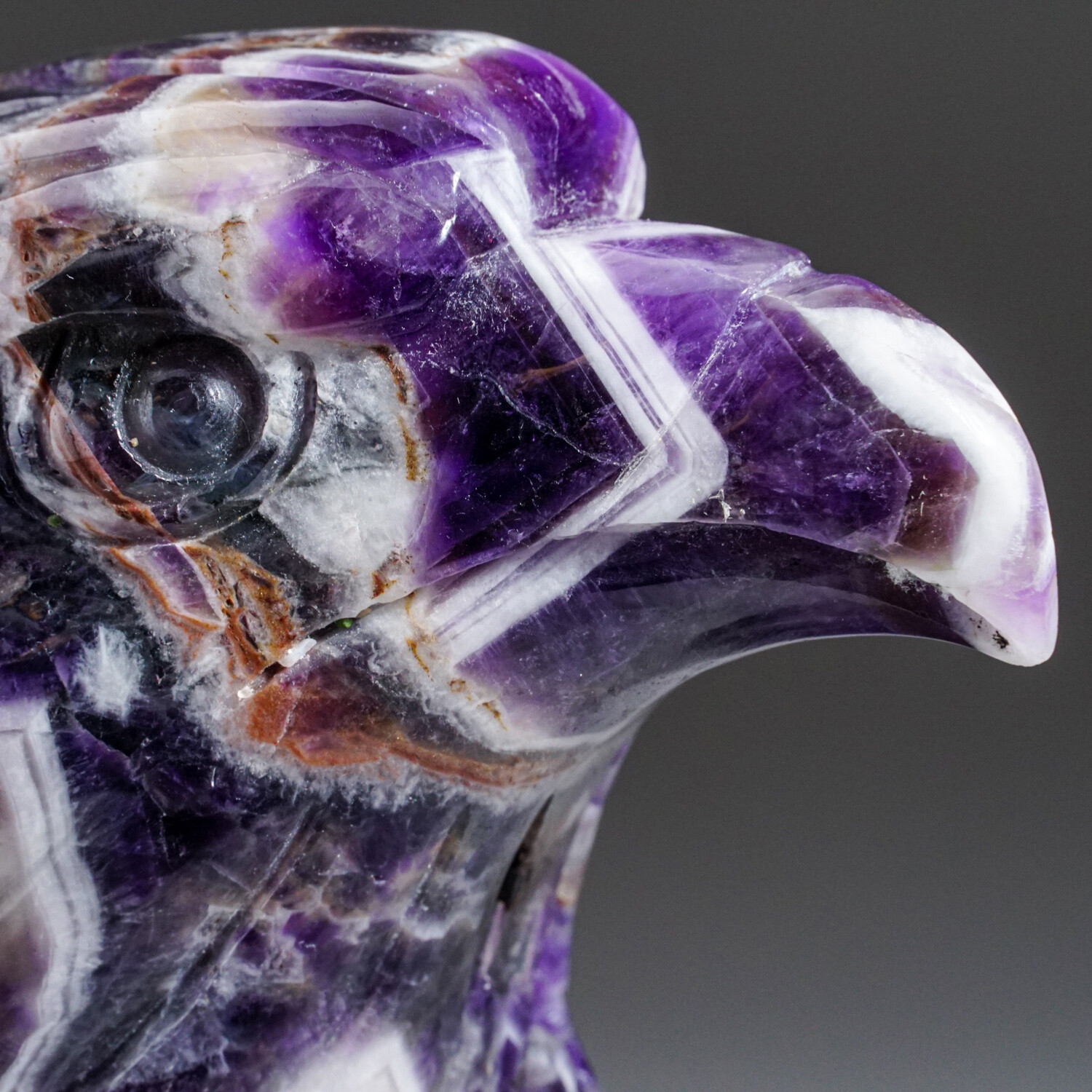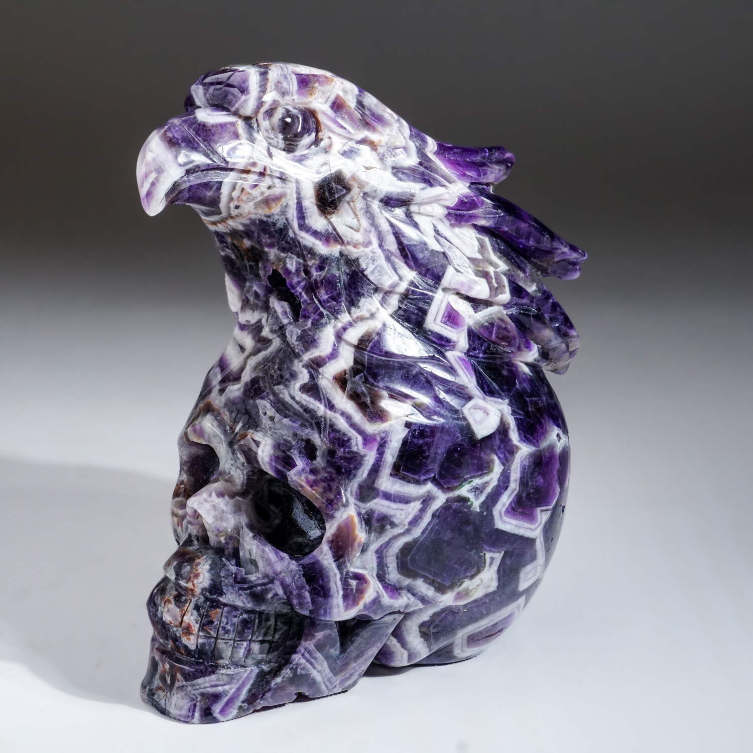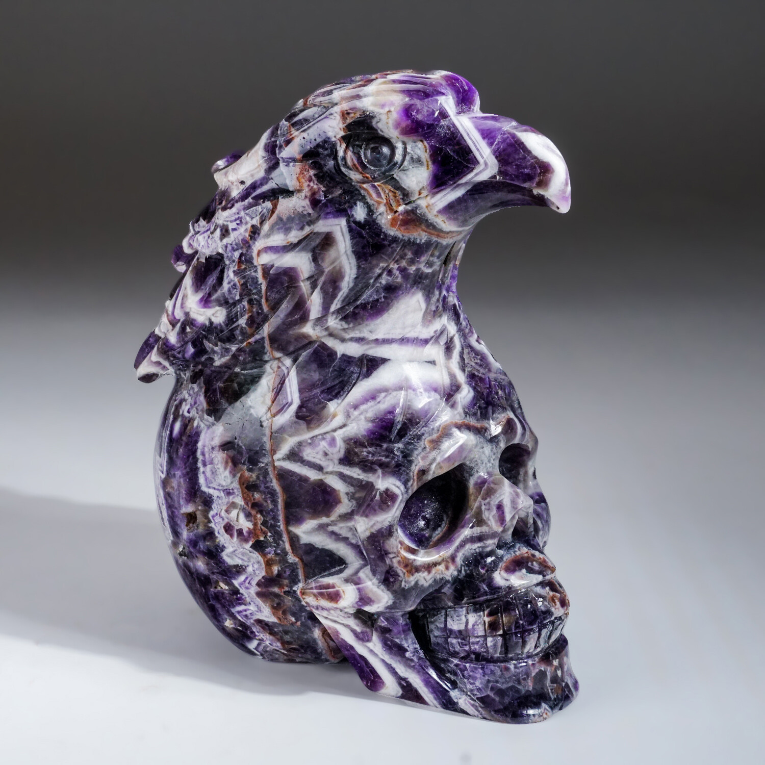 Genuine Polished Hand Carved Chevron Amethyst Eagle & Skull