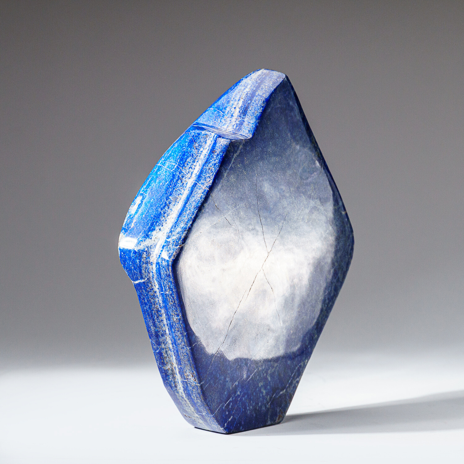 Beautiful hand-polished free form of AAA quality natural Afghani lapis lazuli. This specimen has rich, electric-royal blue color enriched with scintillating pyrite micro-crystals. Lapis Lazuli is a powerful crystal for activating the higher mind and enhancing intellectual ability. It stimulates the desire for knowledge, truth and understanding, and aids the process of learning. It is excellent for enhancing memory.