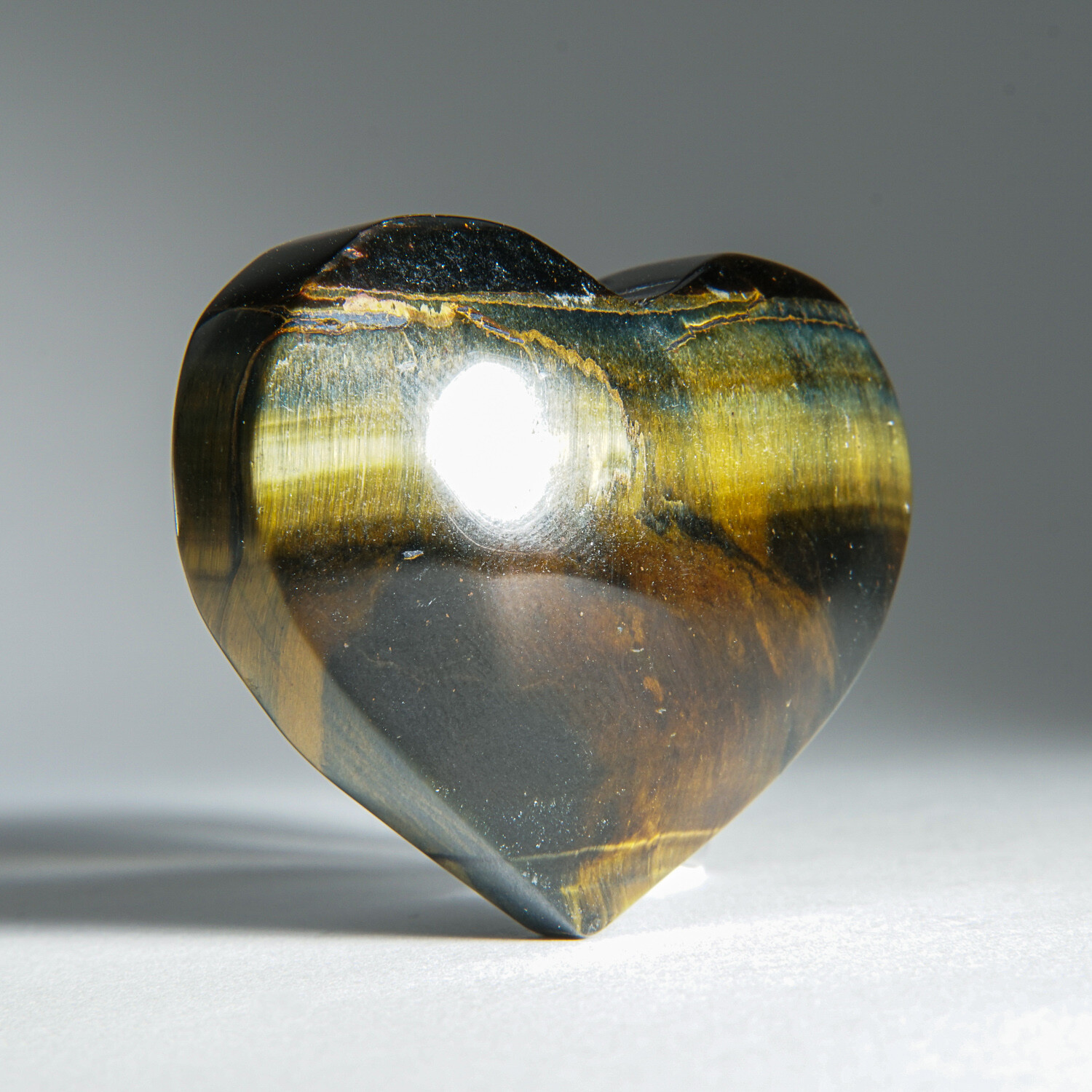 Genuine Polished Tiger's Eye Heart & Velvet Pouch // 200g
