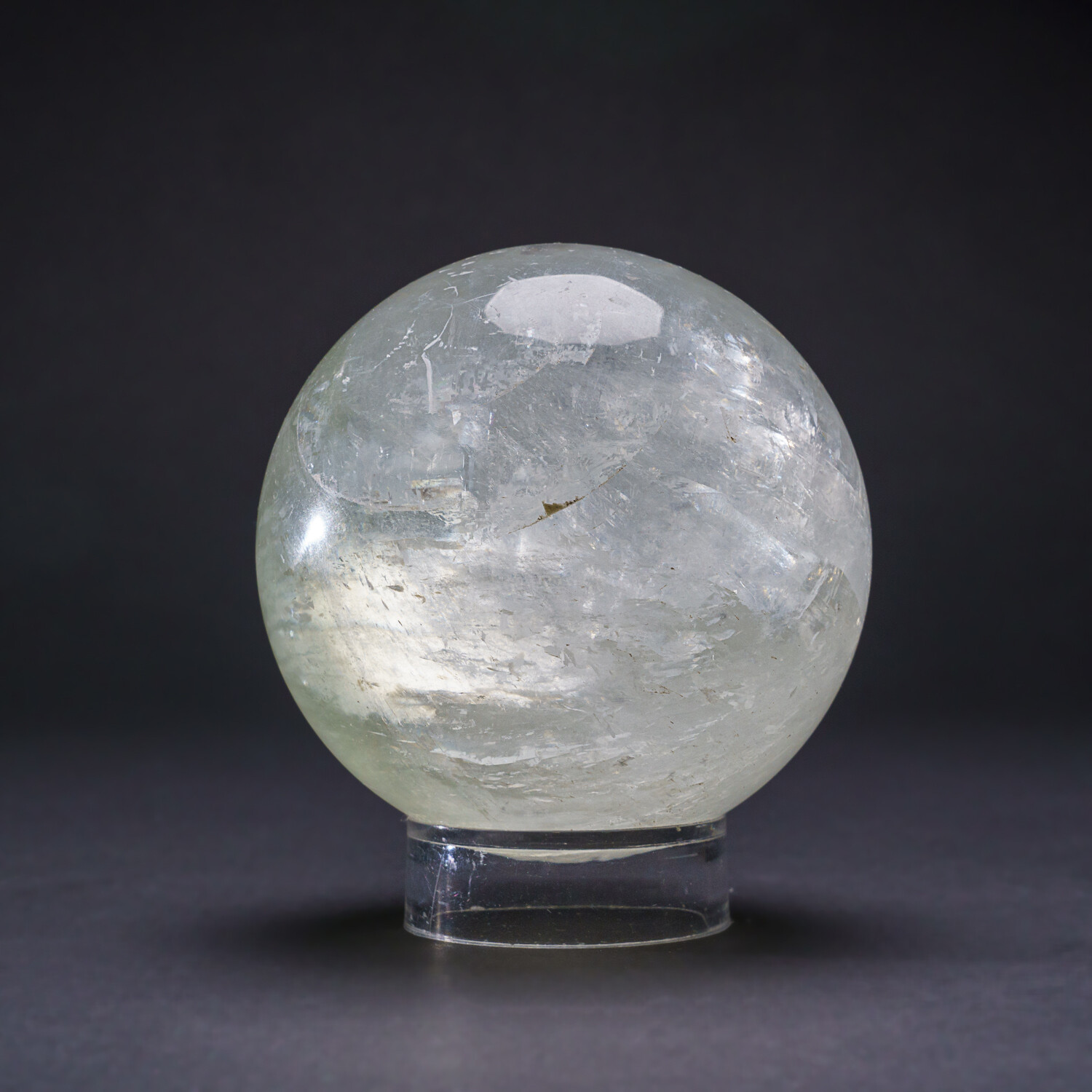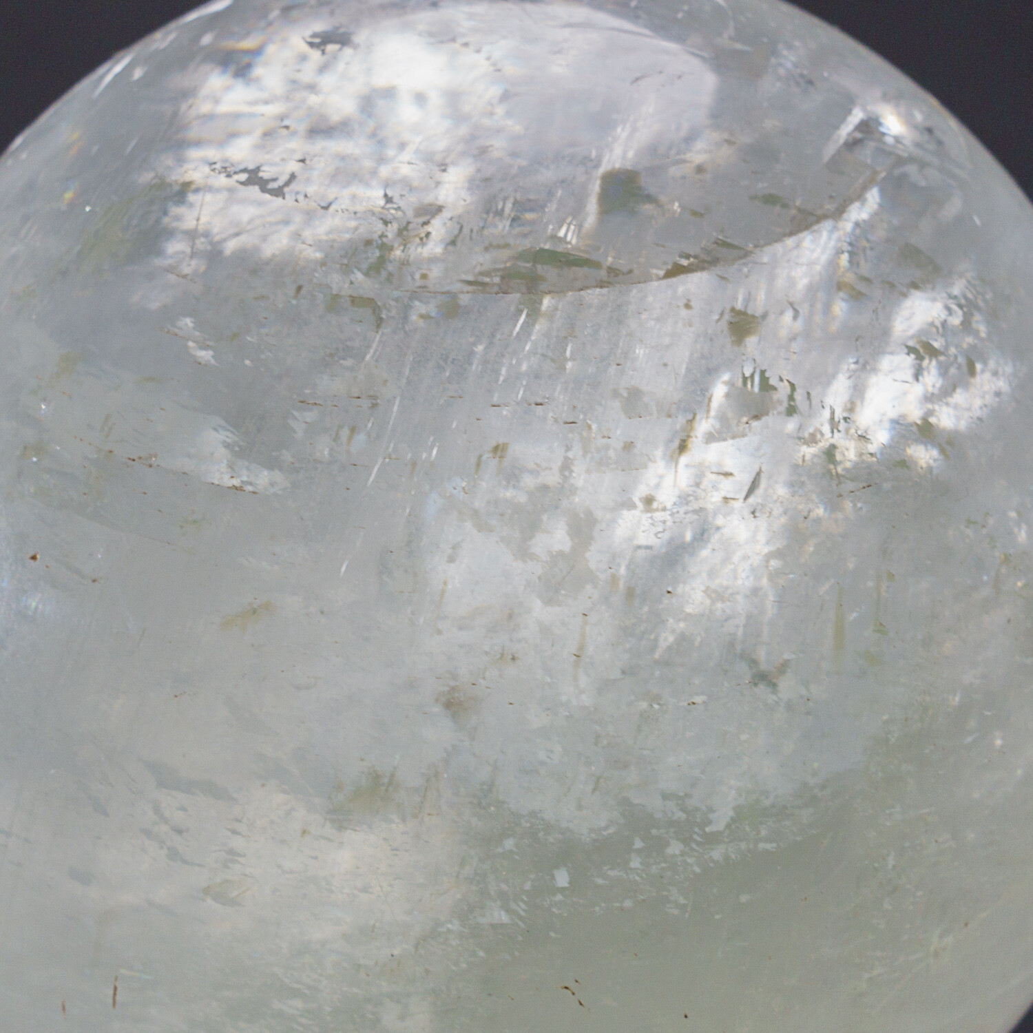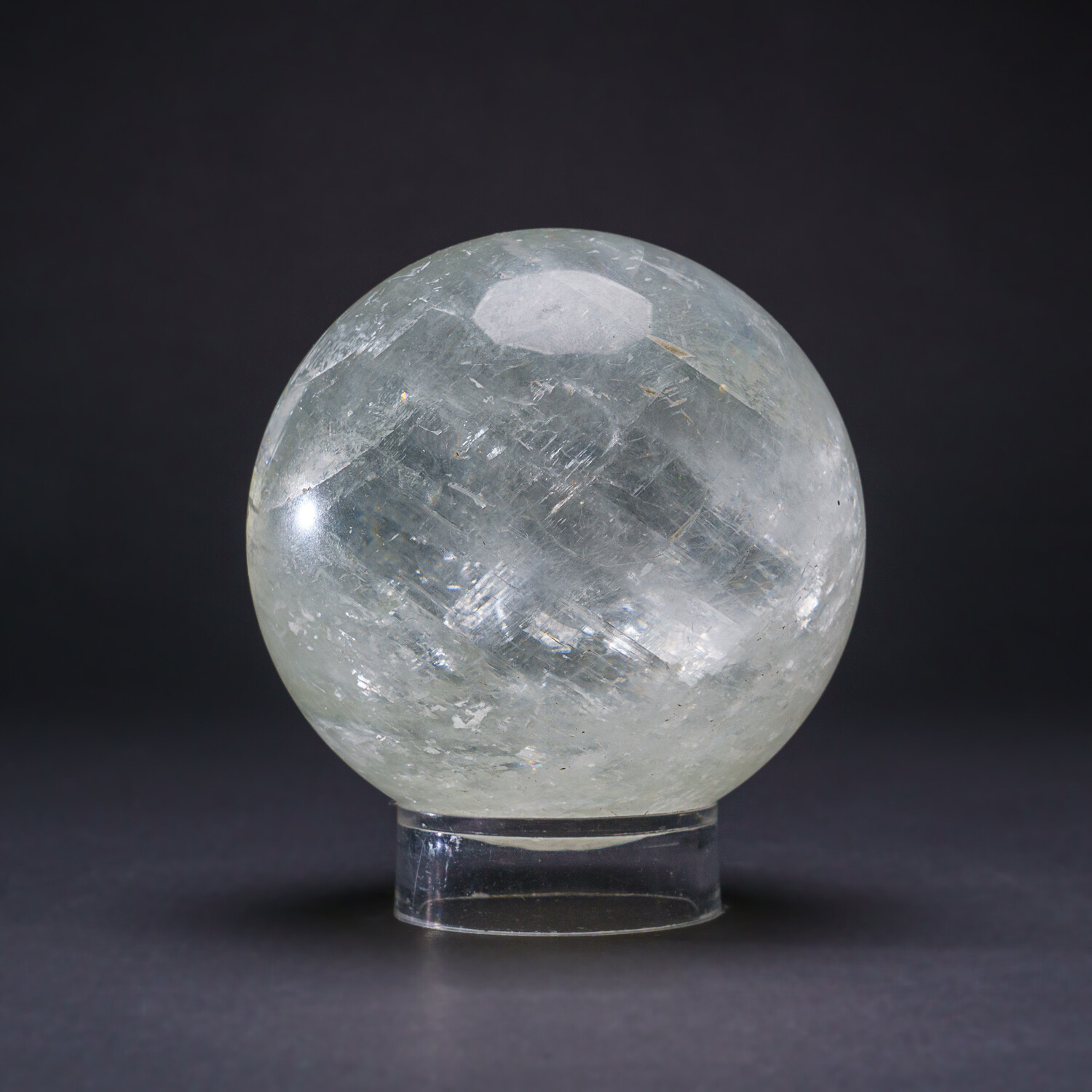 A beautiful Brazilian optical calcite sphere. This specimen has great transparency and is hand-polished to a beautiful smooth and highly reflective finish.