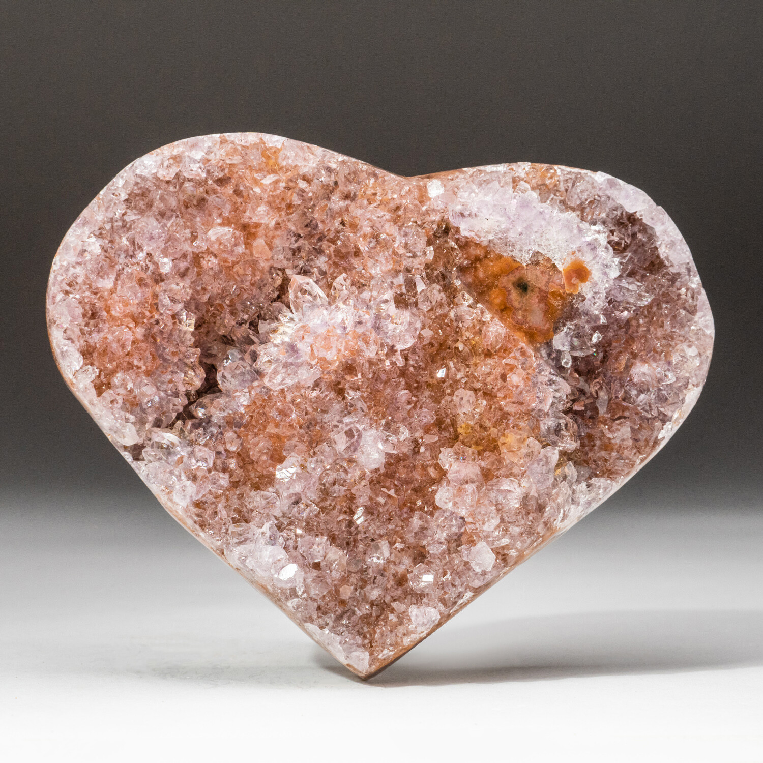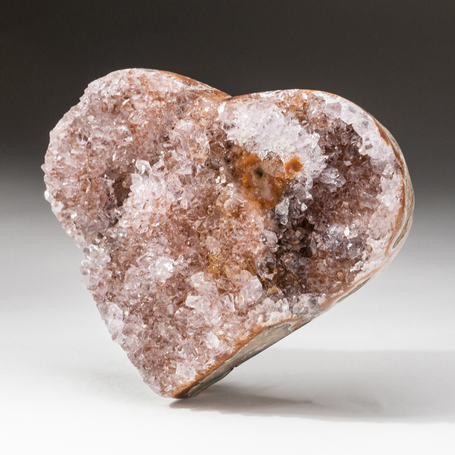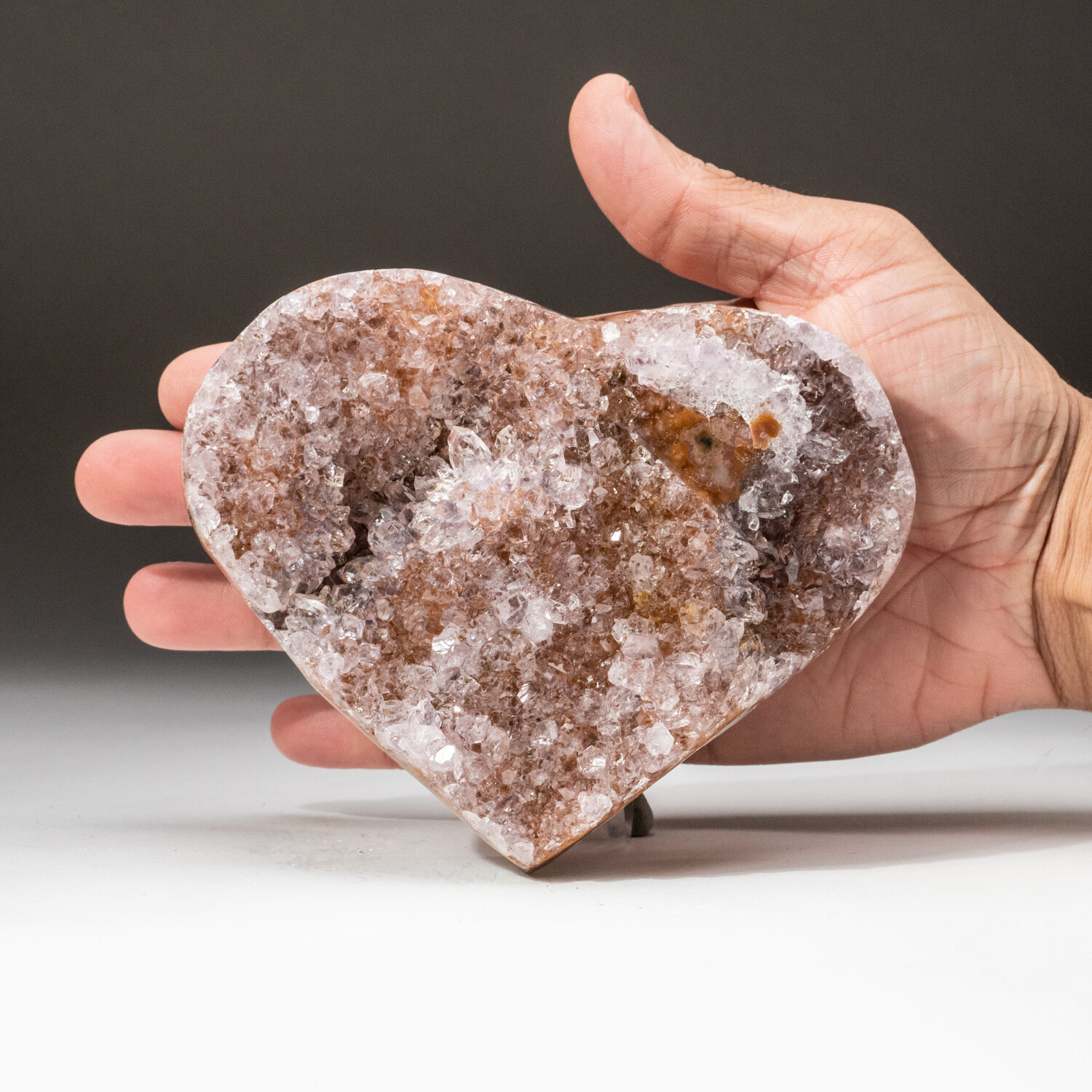 This lustrous cluster of deep-grape Brazilian Amethyst, handmade and formed into a heart shape with a beautiful polished agate rim. The exposed crystals on this heart are very unique, so no two hearts are the same.
