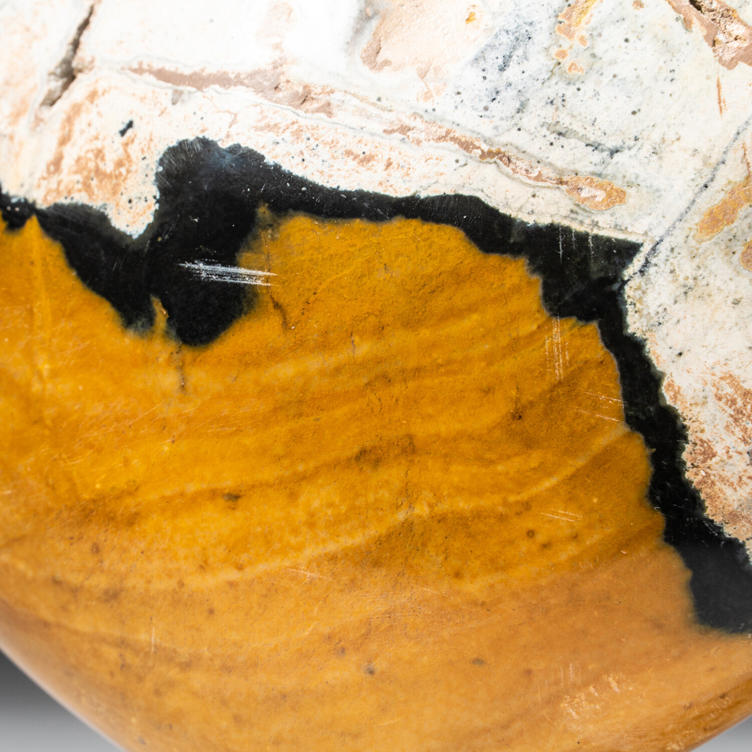 This is a top AAA-quality, hand polished Ocean Jasper heart. It often features vugs lined with white or green druzy quartz crystals. It is found in only one place in the world— along the rugged northeast coast of Madagascar. Ocean Jasper is a beautiful gem material, identified by a unique pattern of eyes, or "orbs" on a swirling, striped background of vibrant color.