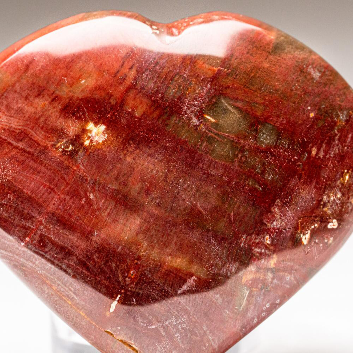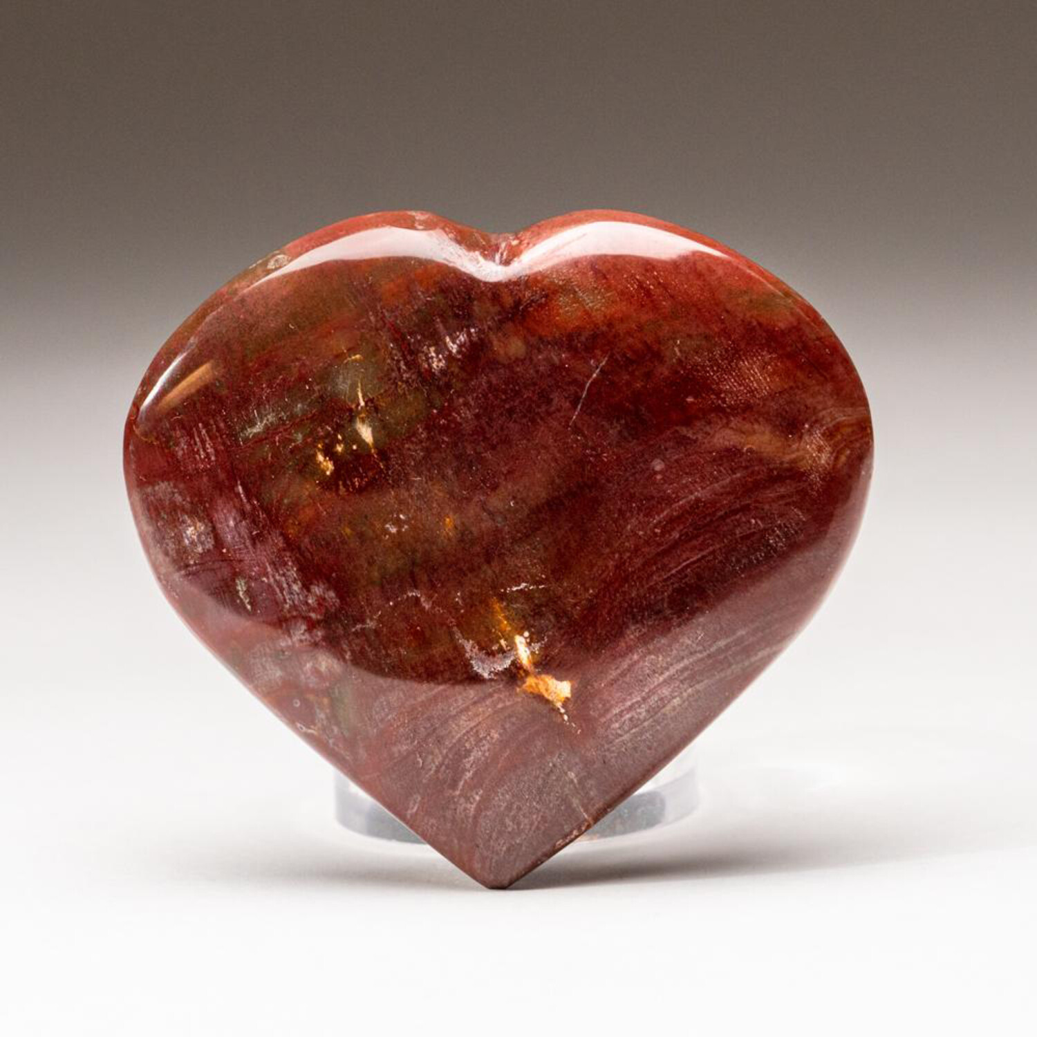 Genuine Polished Petrified Wood Heart + Acrylic Display Stand // V1