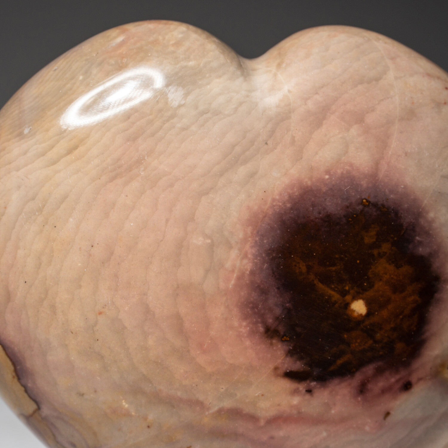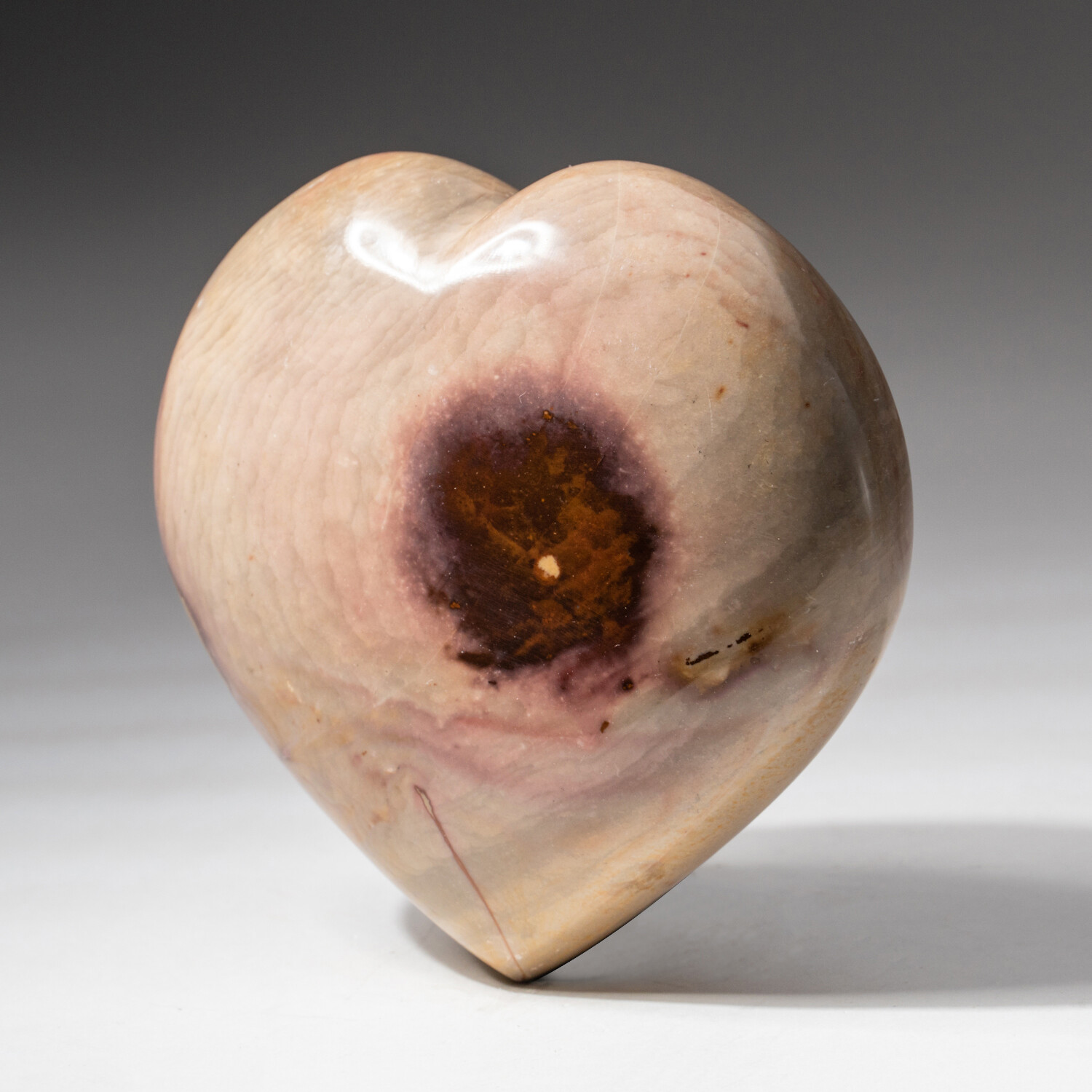 This top AAA quality, hand polished polychrome Jasper heart comes from Madagascar. It's a beautiful multi-colored rock that usually exhibits a circular, eye-shaped, or figurative pattern.