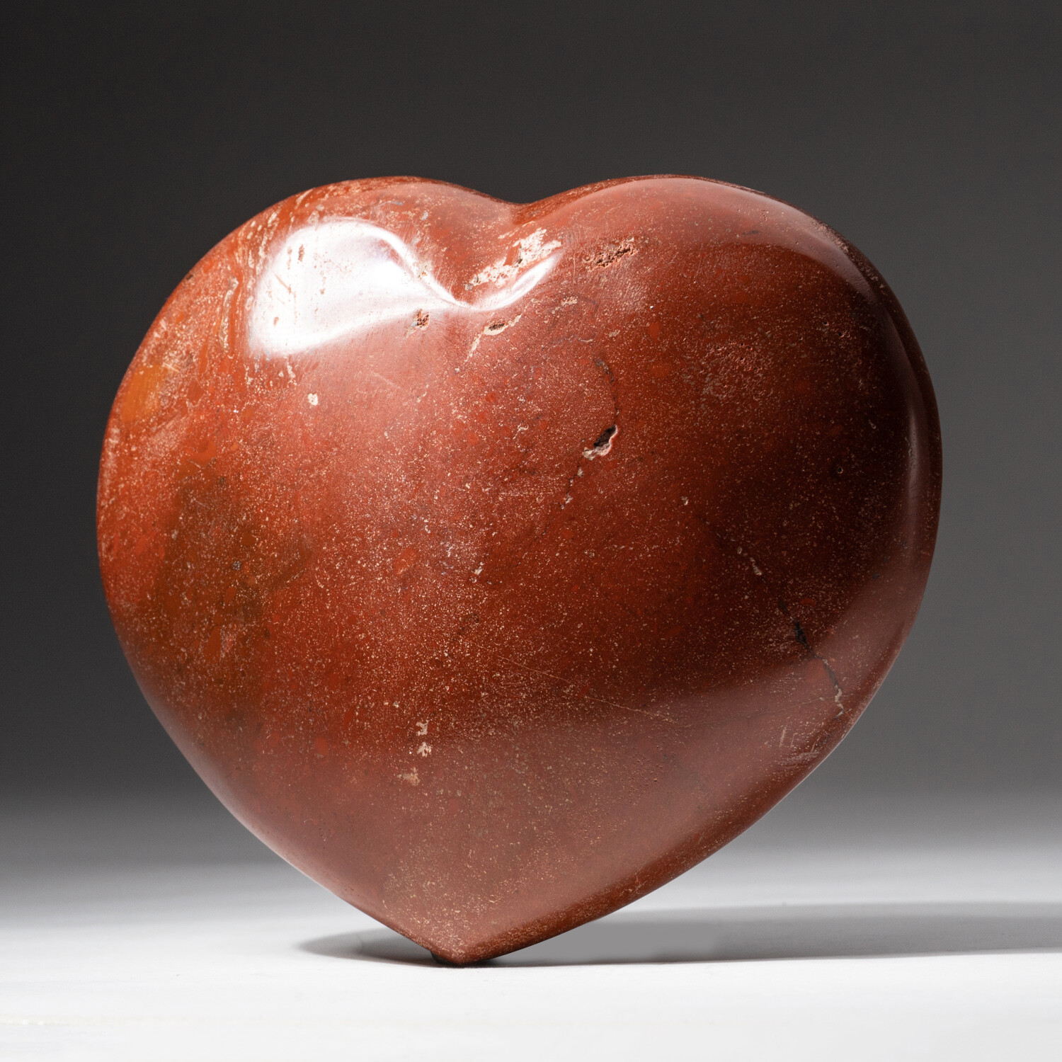 This is a top AAA quality hand polished Red Ocean Jasper heart. It's found in only one place in the world— along the rugged northeast coast of Madagascar. Ocean Jasper is a beautiful gem identified by a unique pattern of eyes, or "orbs" on a swirling, striped background of vibrant color.