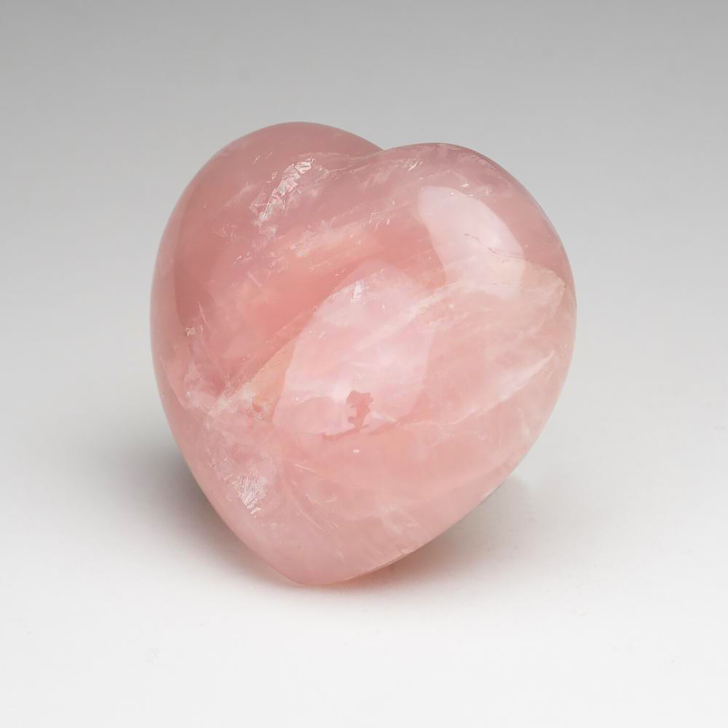 Genuine Polished Rose Quartz Heart + Acrylic Display Stand