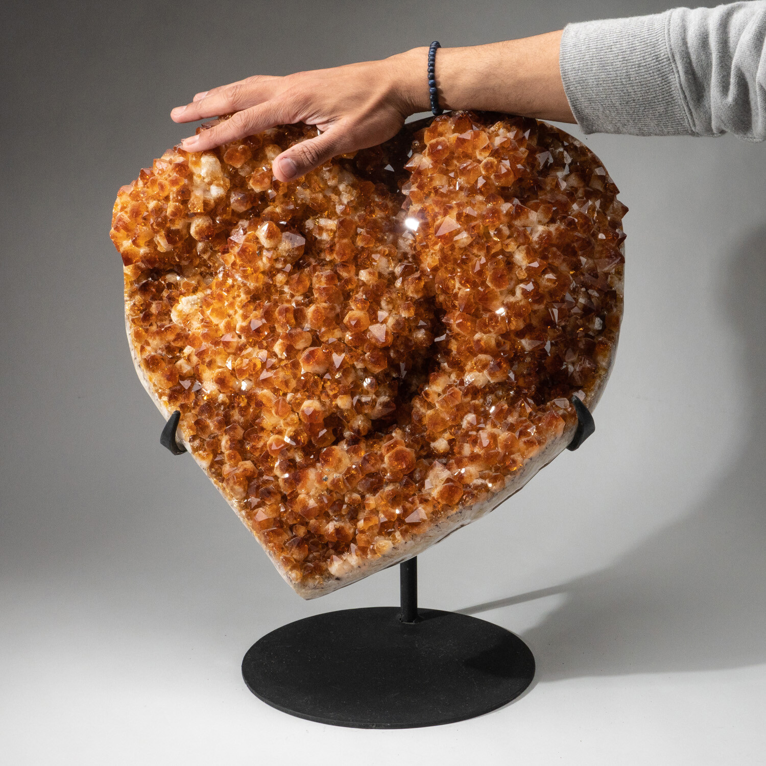 Massive Genuine Citrine Clustered Heart + Custom Metal Stand