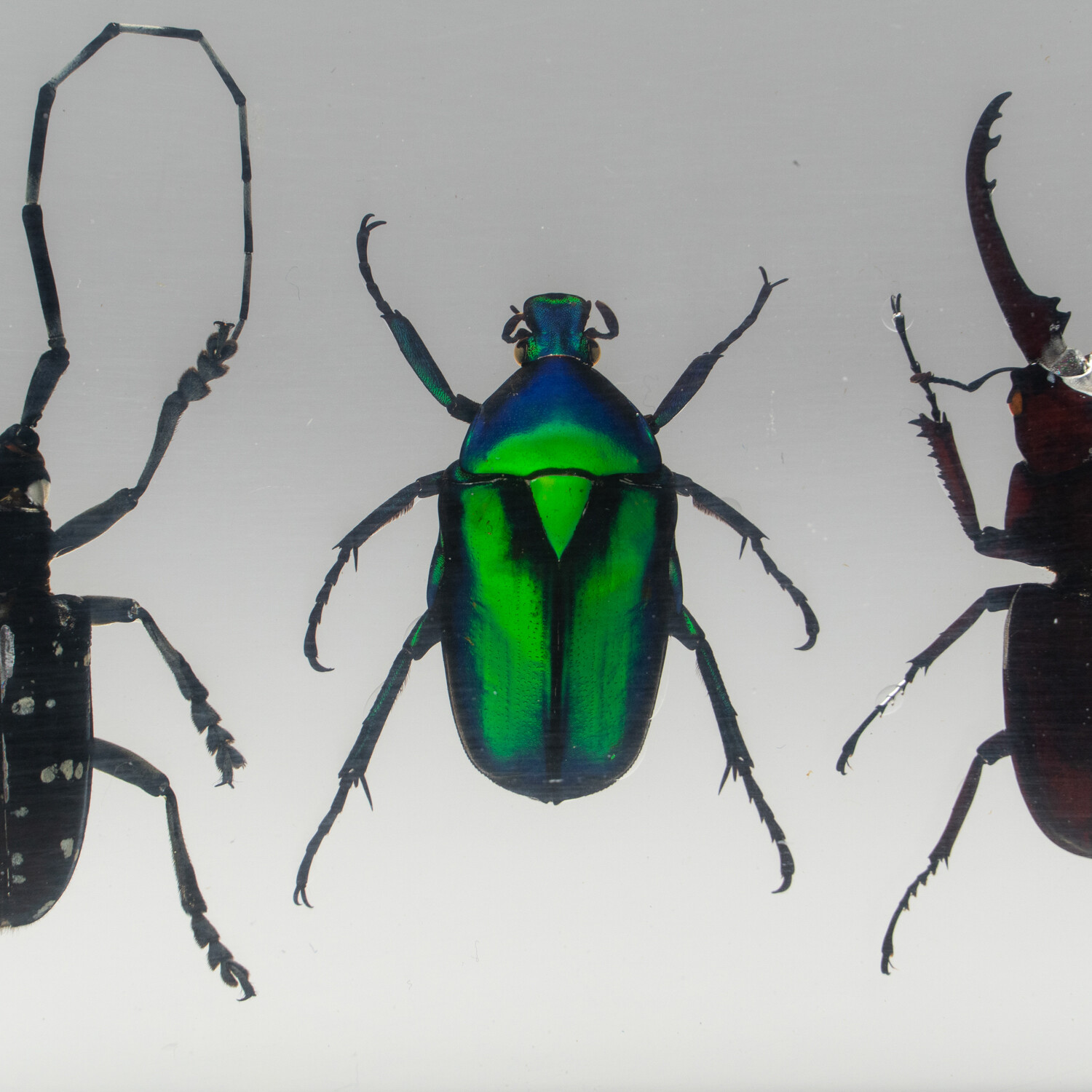 4 Genuine Beetles in Lucite (Antler, Long-Horned, Green Chafer, Stag)