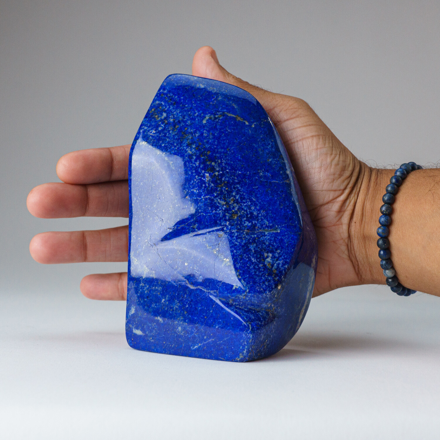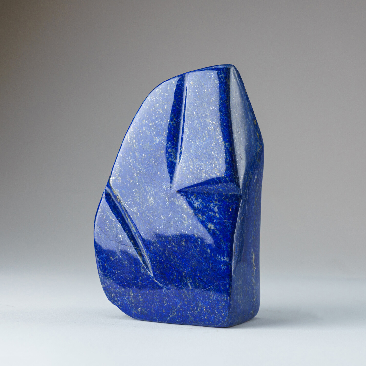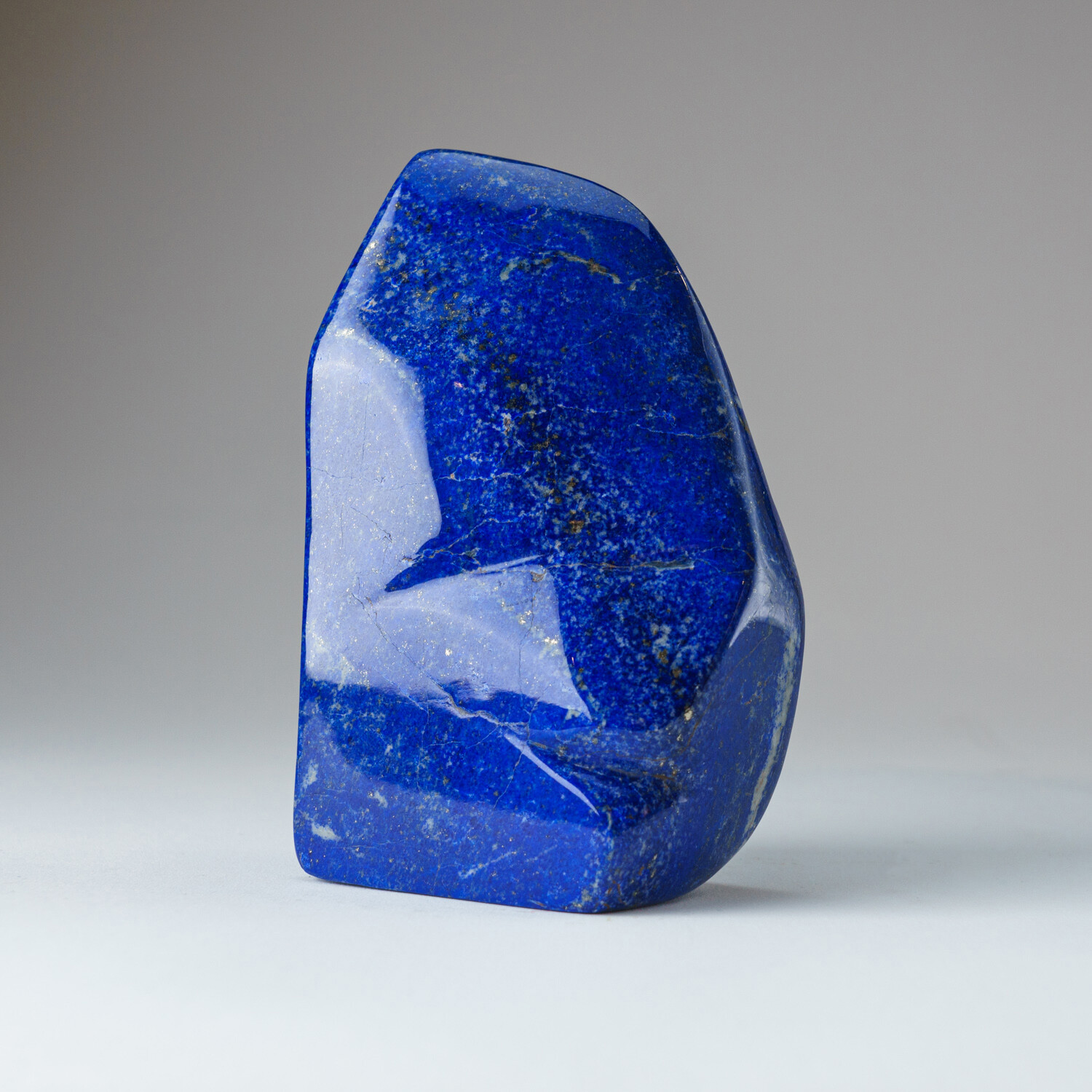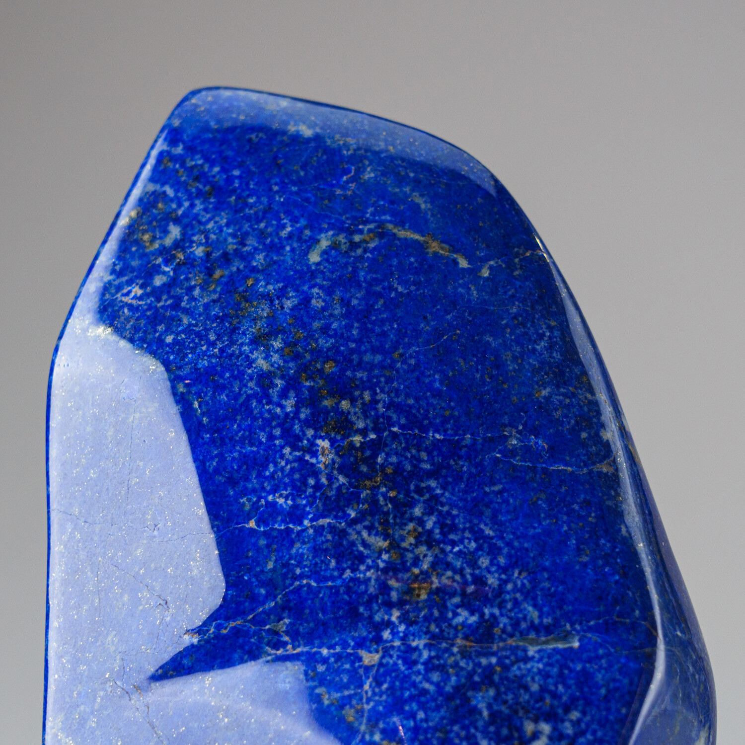 Beautiful hand-polished Point of AAA quality natural Afghani lapis lazuli. This specimen has rich, electric-royal blue color enriched with scintillating pyrite microcrystals.
