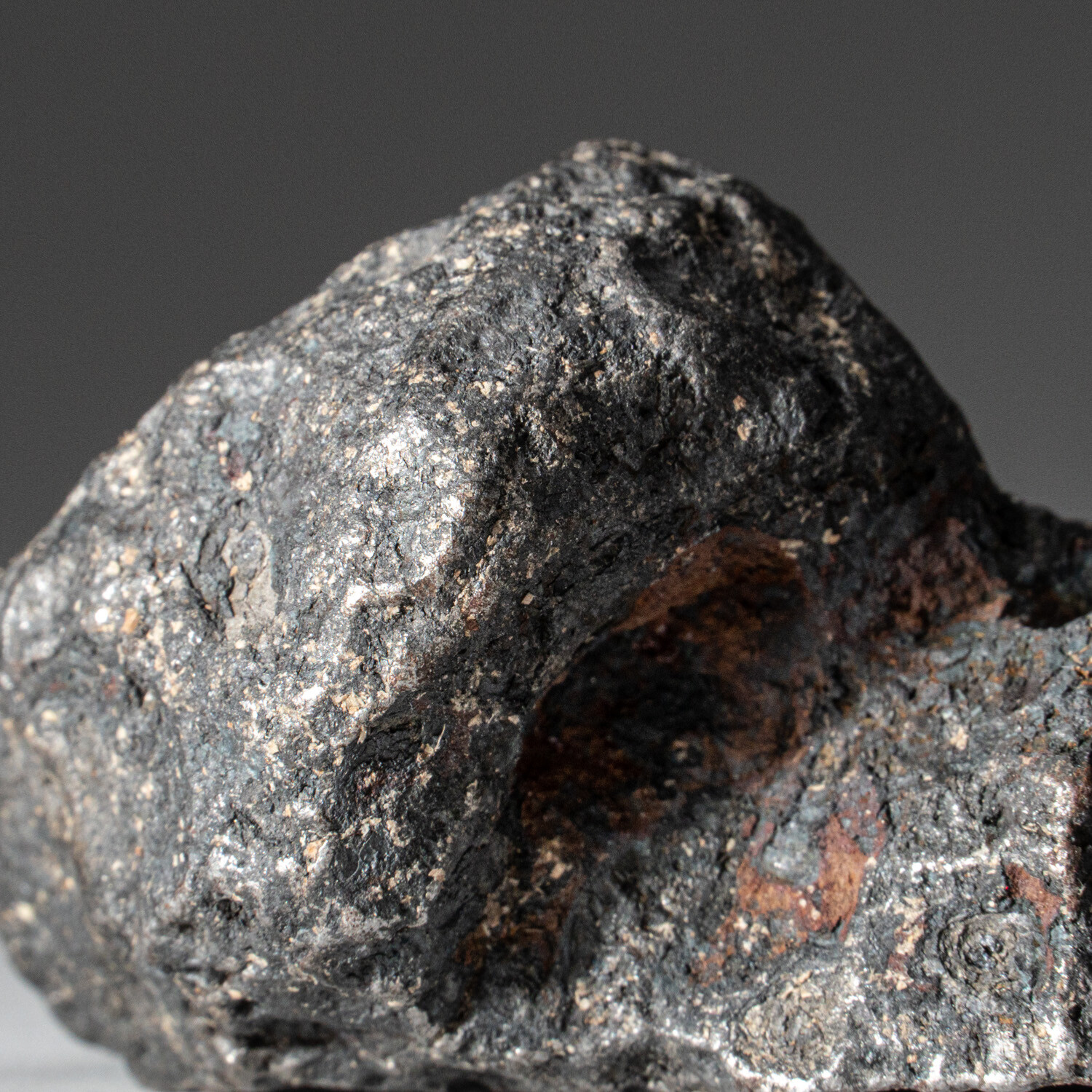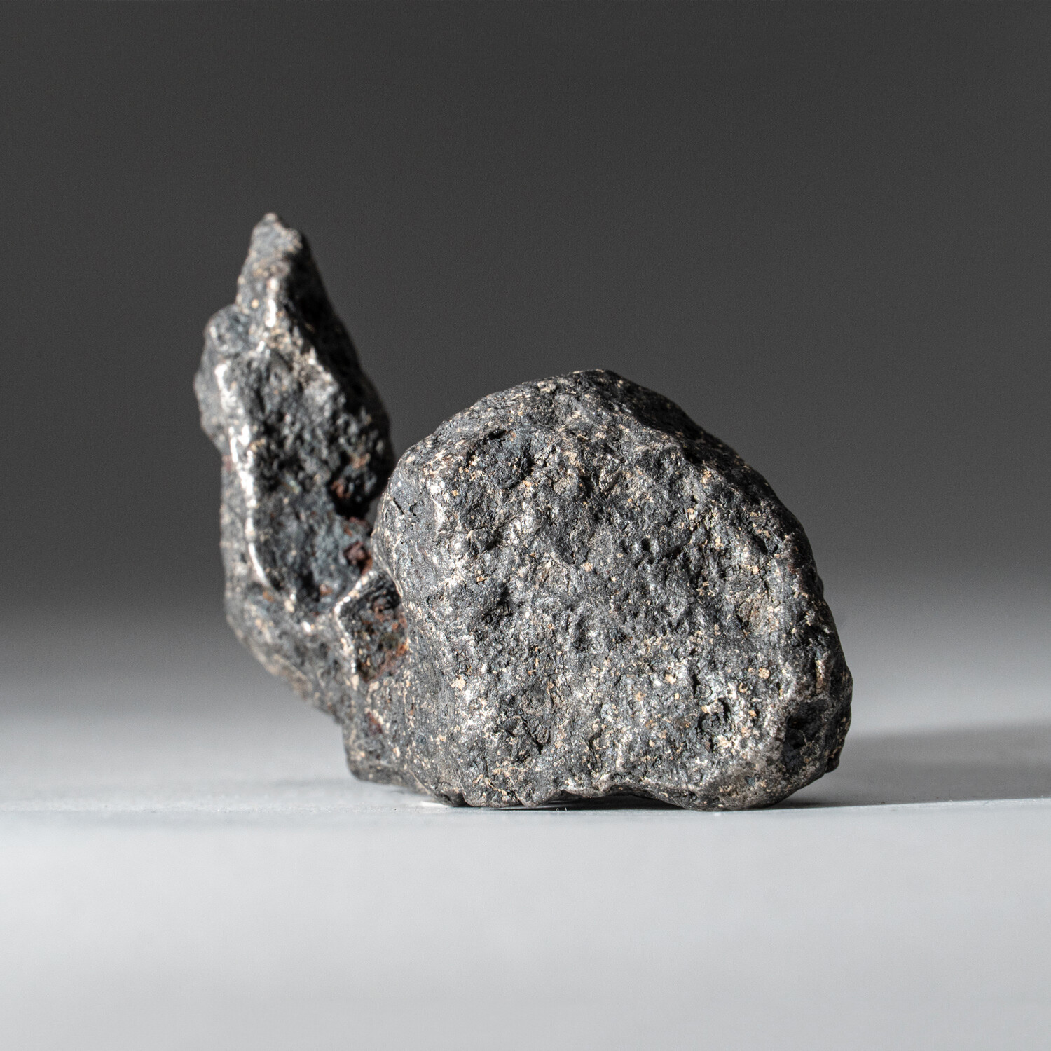 This large meteorite has a subtle metallic sheen with its well-known, natural textured surface area. Scientists believe that the Campo del Cielo mass probably originated within the Asteroid Belt located between Mars and Jupiter, and probably formed around the same time as the earth: some 4.5 billion years ago. The craters' age is estimated as 4,000–5,000 years. The craters, containing iron masses, were reported in 1576. The total weight of the pieces so far recovered exceeds 100 tonnes, making the meteorite the heaviest one ever recovered on Earth. Campo del Cielo refers to a group of iron meteorites or to the area where they were found situated on the border between the provinces of Chaco and Santiago del Estero, 1,000 kilometers (620 mi) northwest of Buenos Aires, Argentina. This specimen does not require a stand for display.