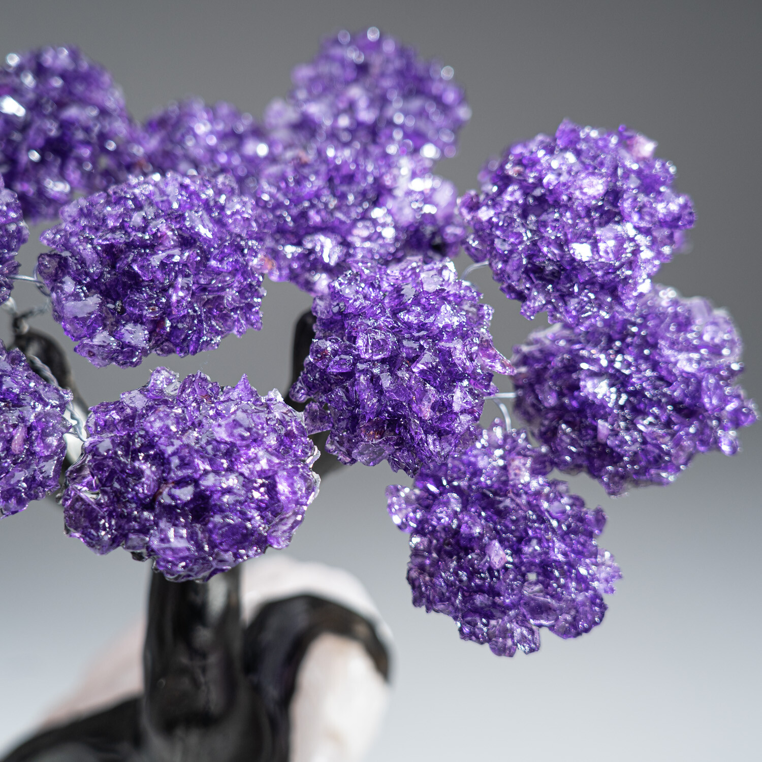 The Eternal Love is a genuine Amethyst clustered gemstone tree set on a Rose Quartz crystal cluster-lined matrix. Each tree is individually handcrafted by Brazilian artisans with a faux tree trunk that has been individually designed and hand painted. This stunning, natural accent makes for a great gift and serves as a beautiful display piece in any room.