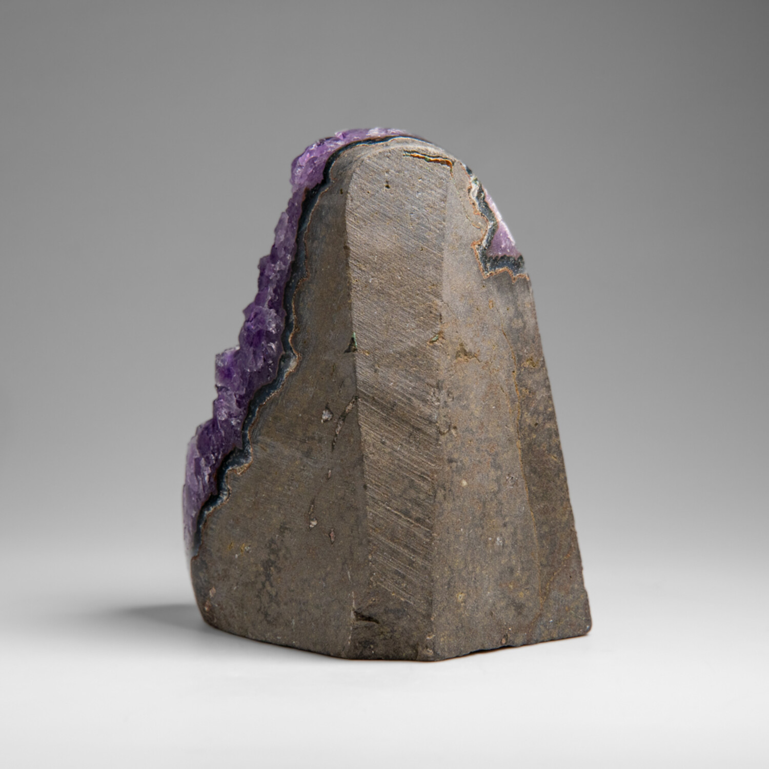 Top quality natural formation of gem amethyst variety quartz cluster with lustrous fully terminated crystals with highly reflective faces and deep transparent to translucent grape color.
