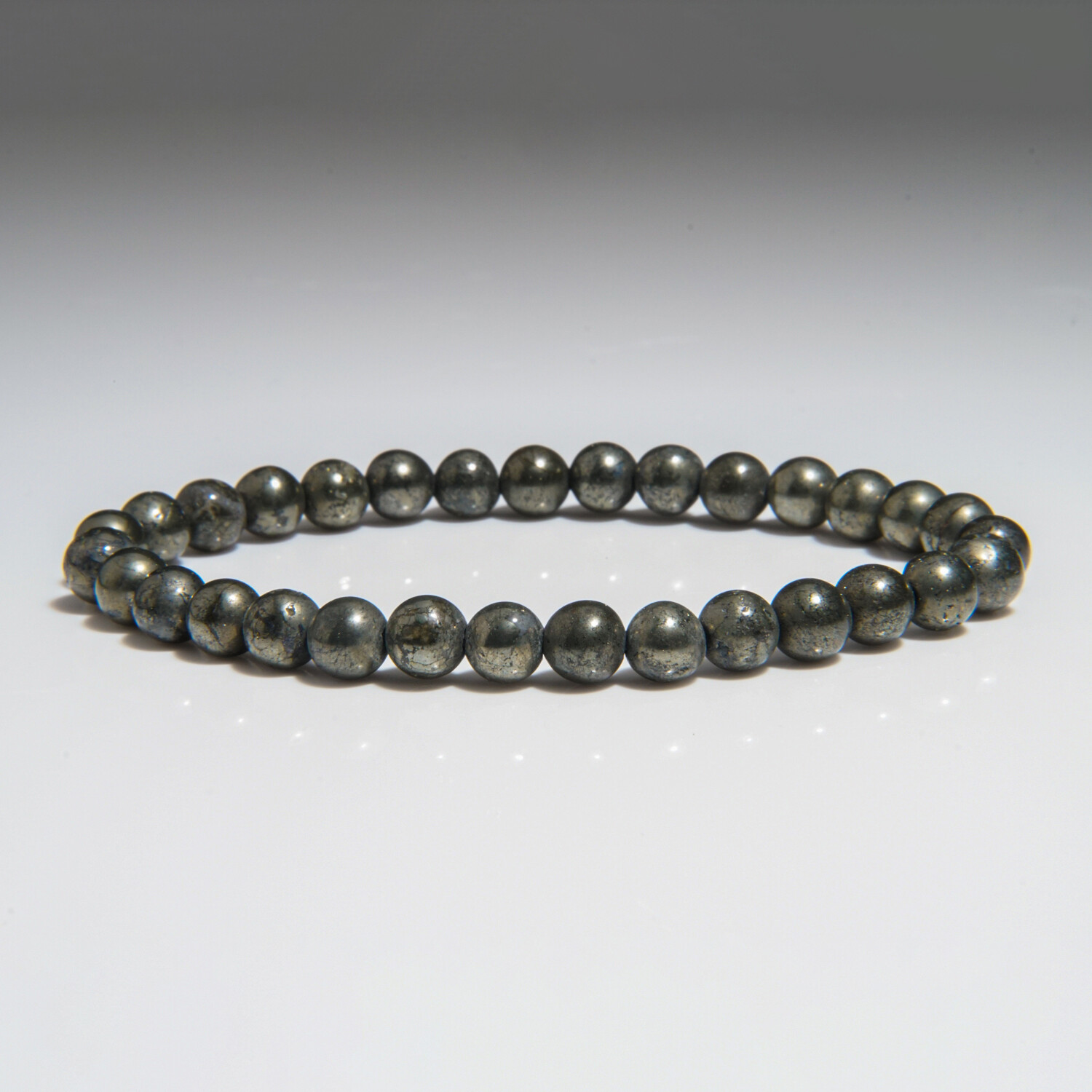 Pyrite is a very protective stone, shielding the user from negative energy of all kinds. This beautiful beaded pyrite stretch bracelet adds an element of classic style to your personal fashion statement.