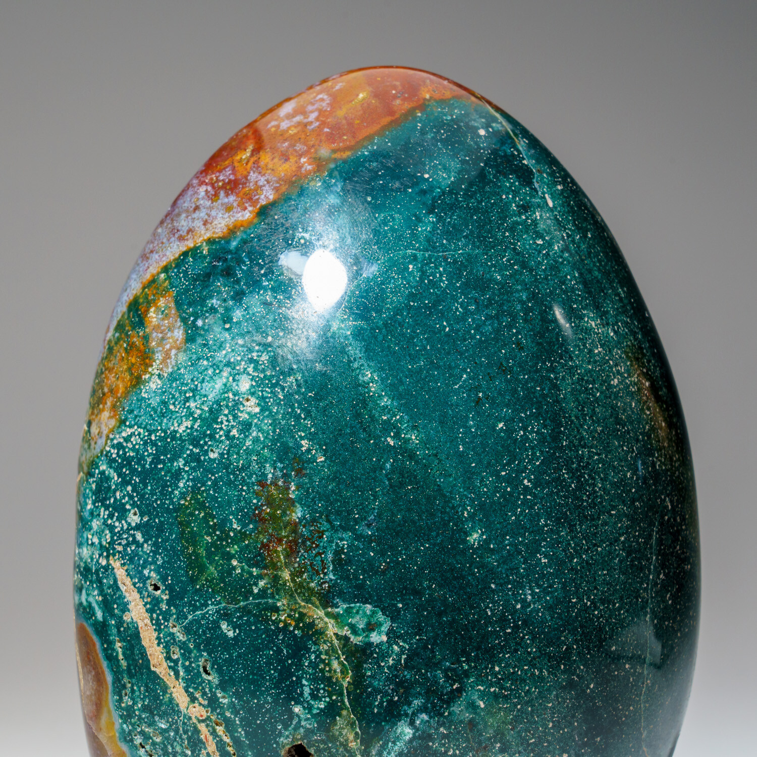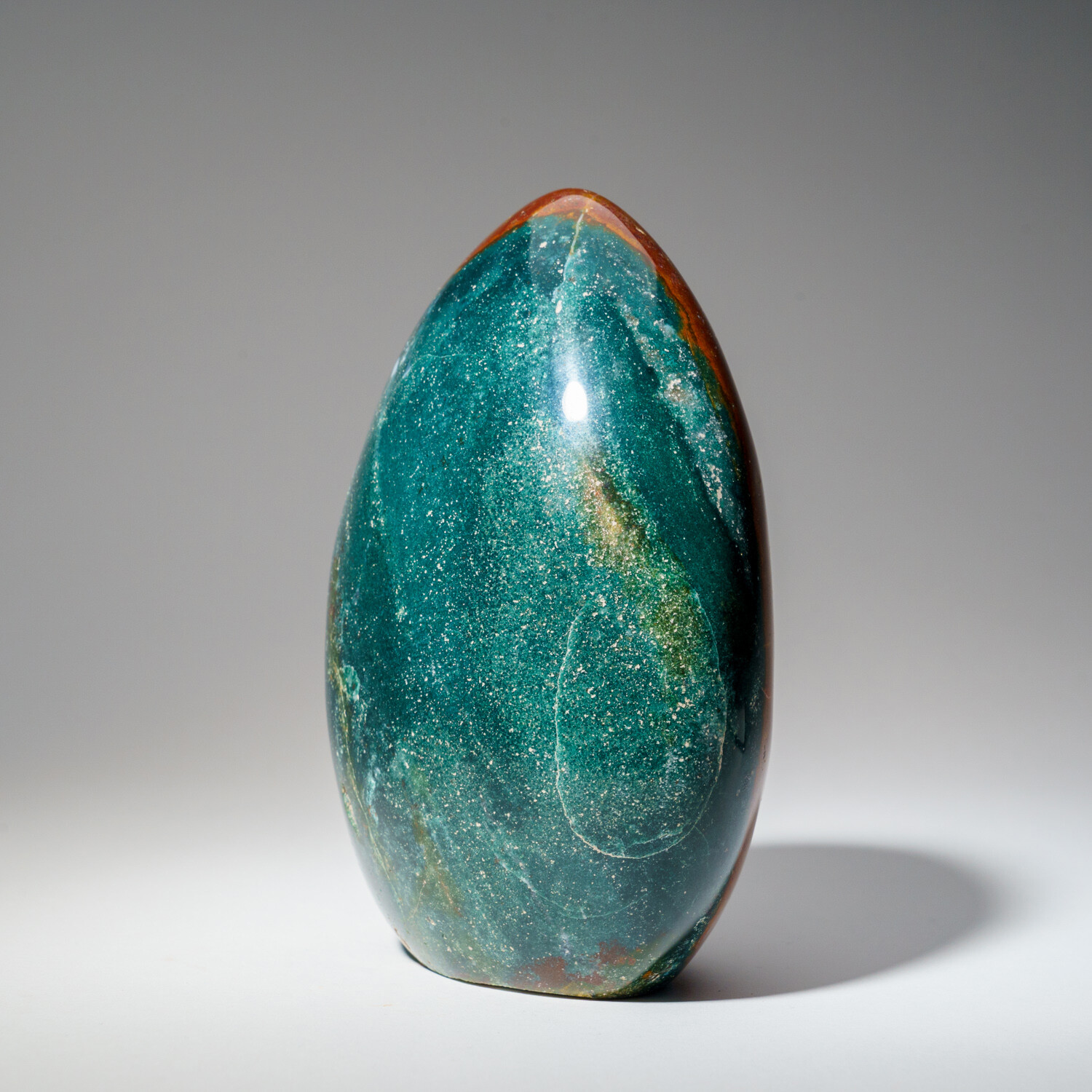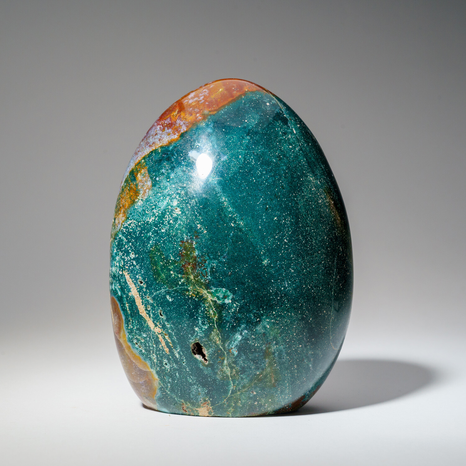 Top-quality, hand-polished freeform, made from a solid piece of Ocean Jasper. It has an amazing pattern with beautiful hues of green, red, and other natural colors. This beautiful piece makes for a wonderful gift or an incredible centerpiece in any home. In keeping with its symbolism, ocean jasper is said to provide calm, uplifting energy to the holder in trying times, feeding into a more optimistic outlook on life.