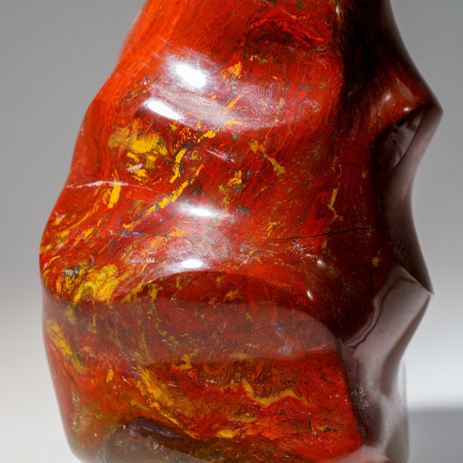 Beautiful hand polished petrified wood flame free-form from Madagascar. It has an amazing pattern with vibrant hues of brown, yellow, and orange. Perfect for use in any room around the home. Fossilized Petrified Wood, which is also known as Agatized Wood, forms when a tree has died and silicon dioxide forms in place of the wood that degrades until there is no wood left, only Quartz.