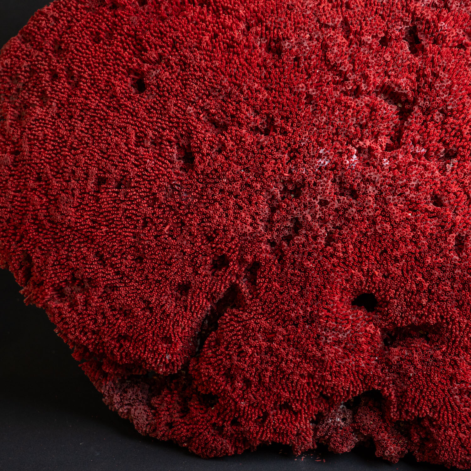 This genuine Red Pipe Organ coral (Tubipora musica) is an alcyonarian coral native to the waters of the Indian Ocean and the central and western regions of the Pacific Ocean. It is the only known species of the genus Tubipora. This species is a soft coral but with a unique, hard skeleton of calcium carbonate that contains many organ pipe-like tubes.