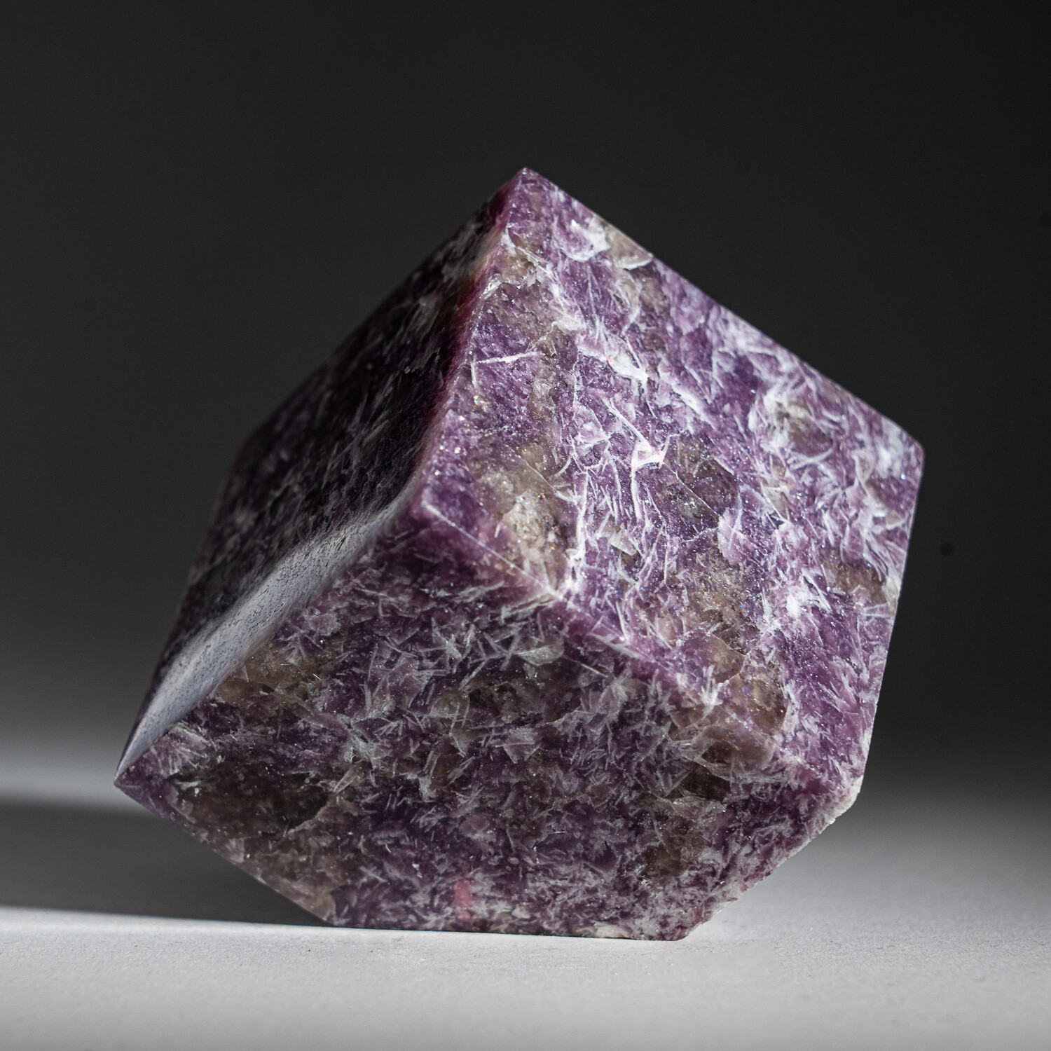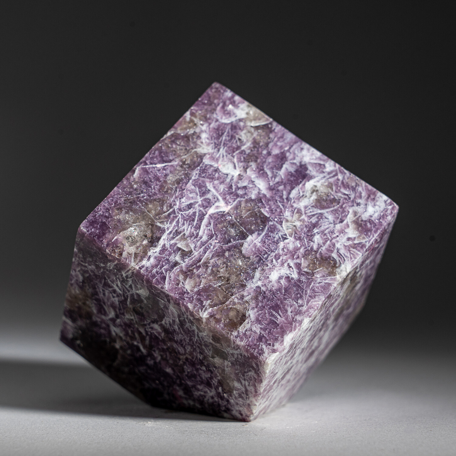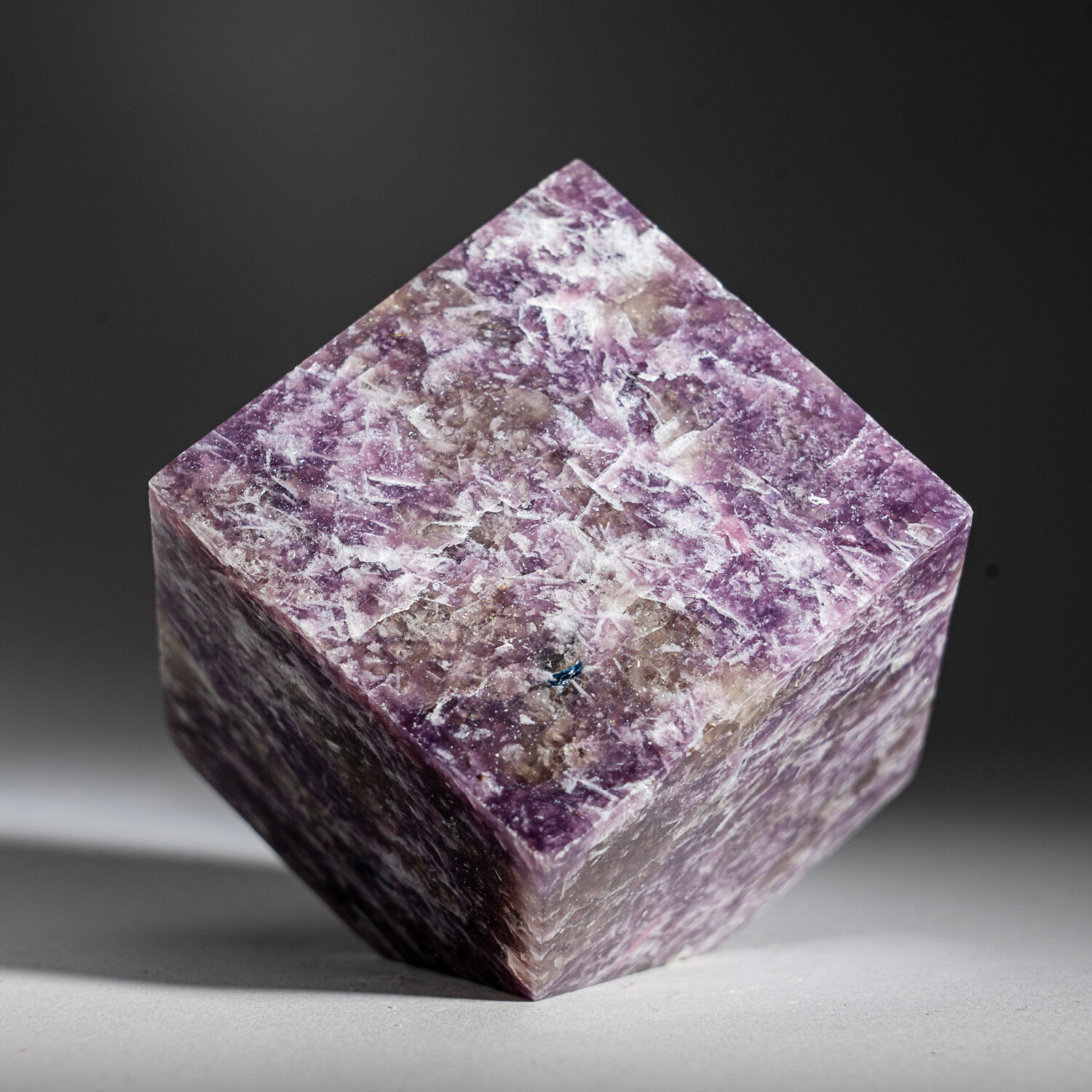 Beautiful, top-quality polished lepidolite cube. This piece has a beautifully soothing lilac color with organic specs of vibrant tones of purple. This specimen is polished to a mirrored finish on all sides, which amplifies its beautiful color.