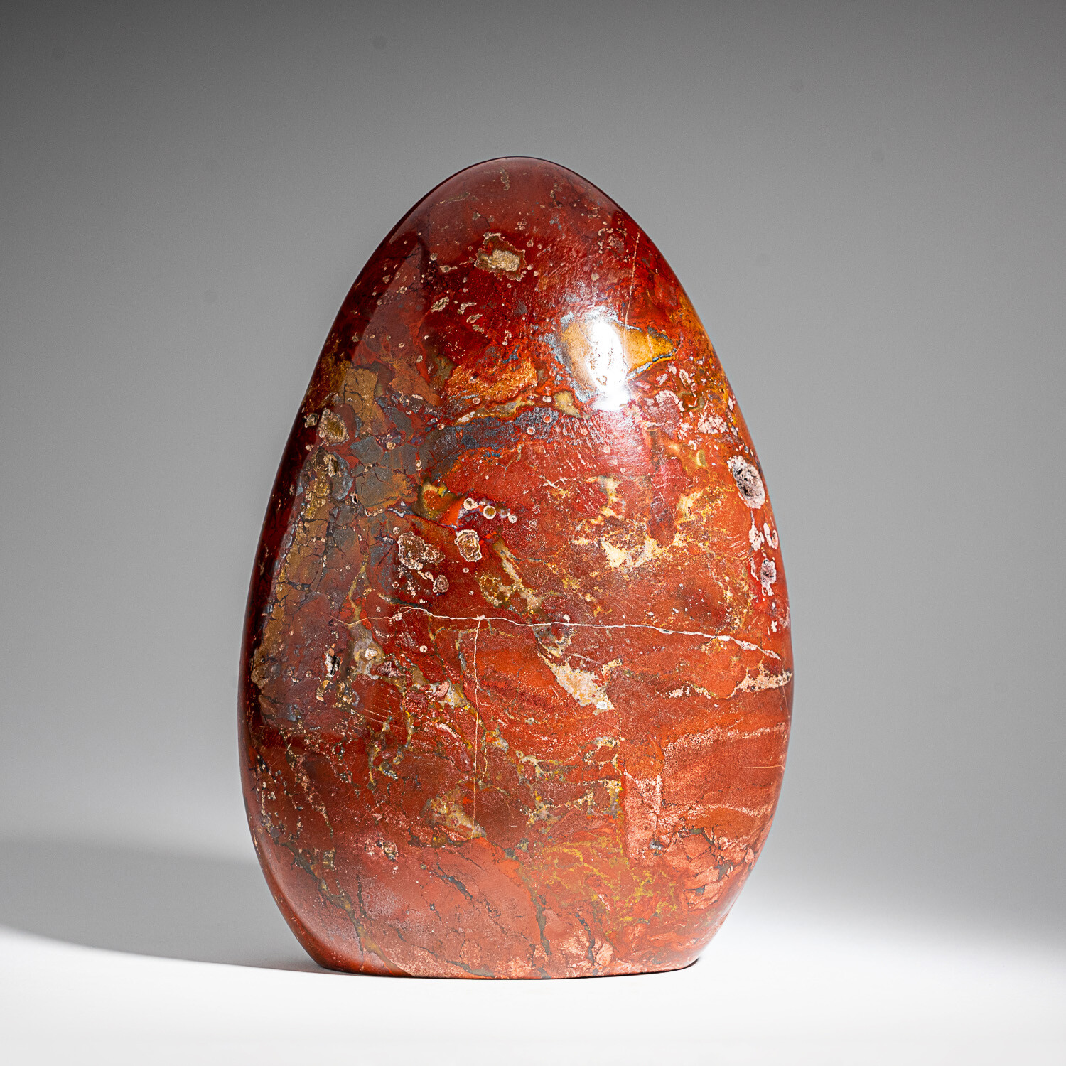 A beautiful genuine polished Ocean Jasper freeform from Madagascar. This piece has an amazing pattern with vibrant hues of red and brown. This piece has the typical "pitting" found in most Ocean Jasper specimens.