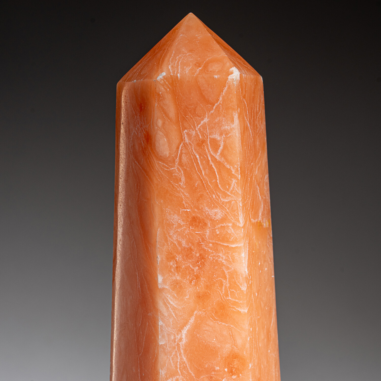 AAA Quality gem translucent glowing Mexican orange calcite point with all sides hand polished to a mirrored finish. This specimen has rich orange color throughout.