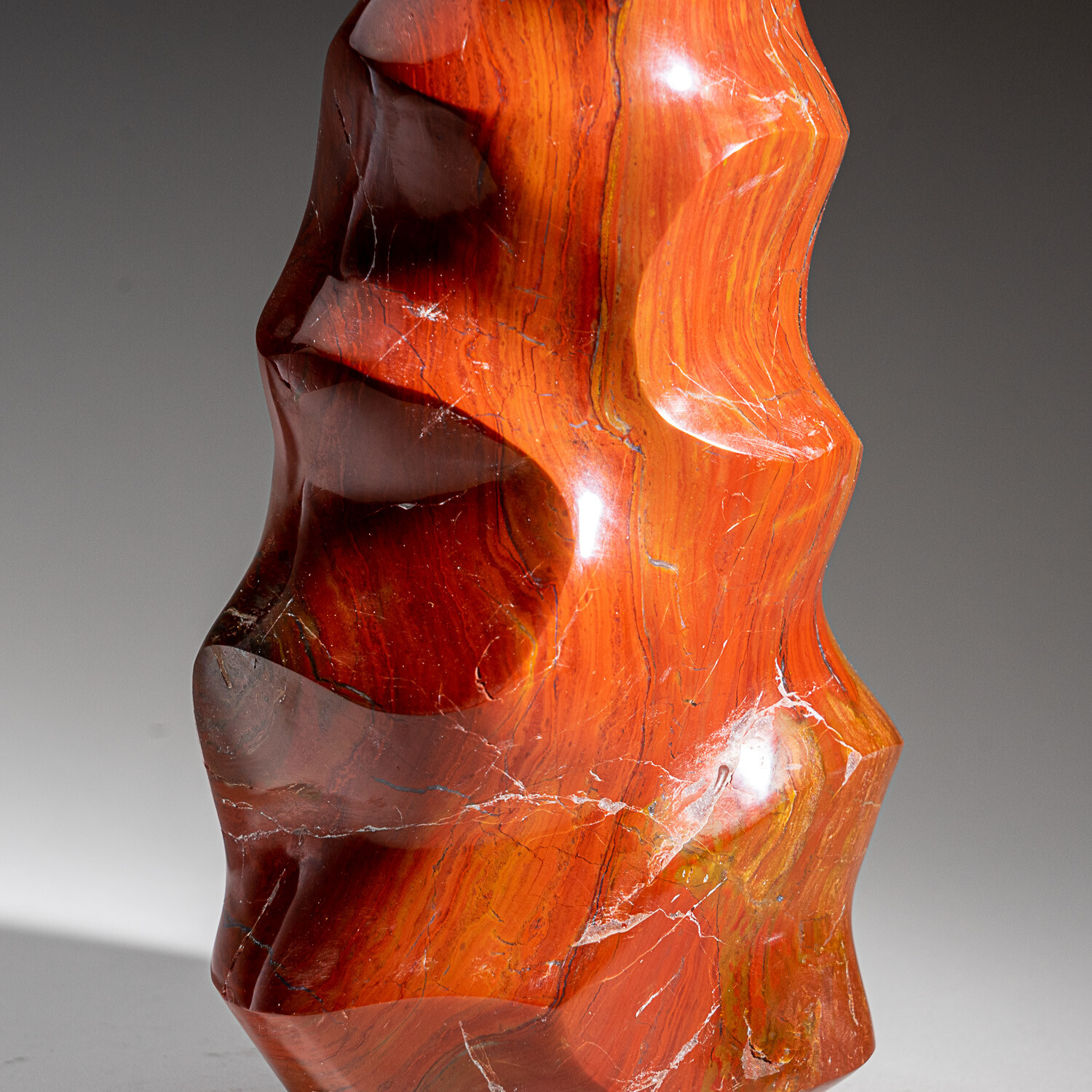 Beautiful hand polished petrified wood flame free-form from Madagascar. It has an amazing pattern with vibrant hues of brown, yellow, and orange. Perfect for use in any room around the home. Fossilized Petrified Wood, which is also known as Agatized Wood, forms when a tree has died and silicon dioxide forms in place of the wood that degrades until there is no wood left, only Quartz.