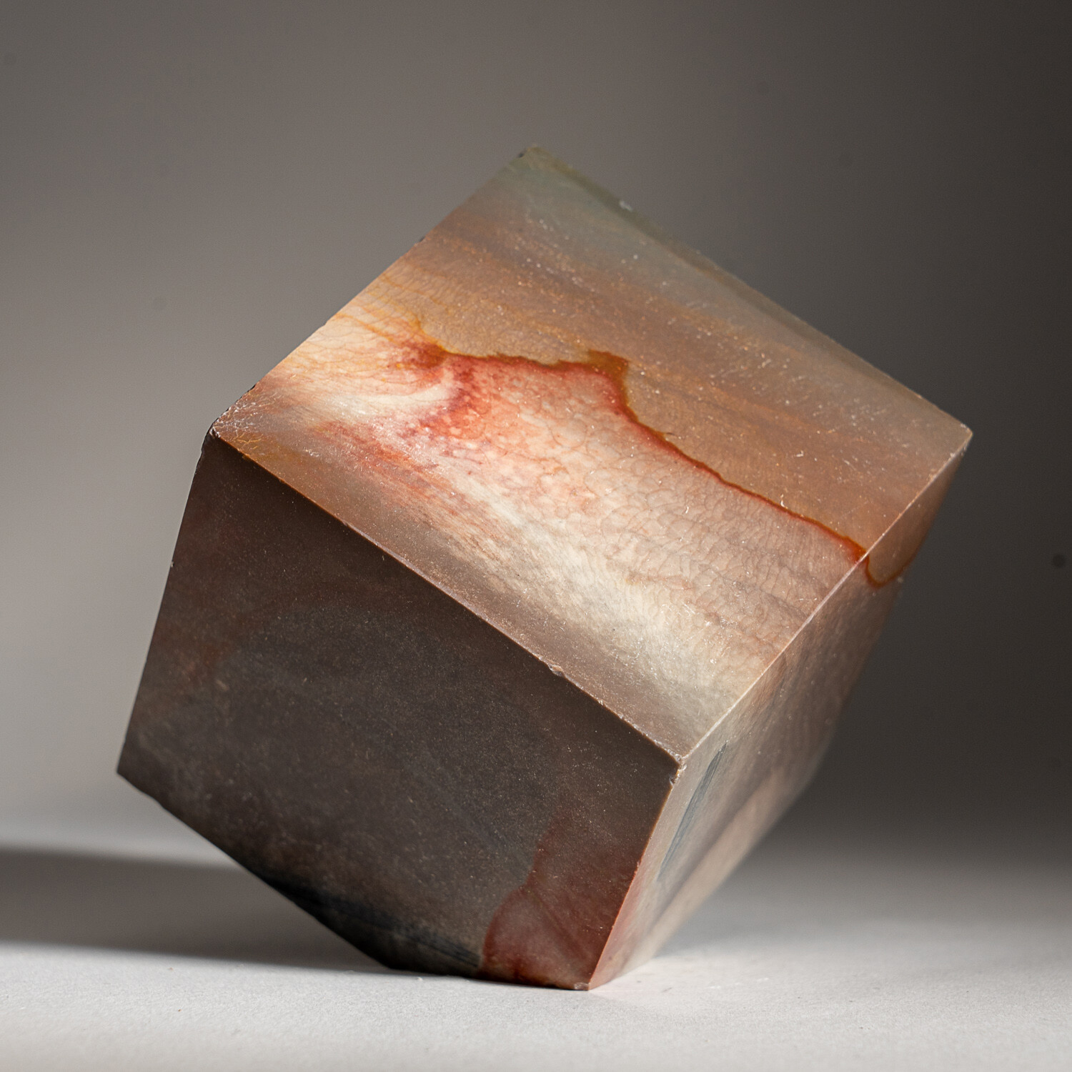A beautiful, top-quality, hand-polished polychrome cube. A beautiful multi-colored rock that usually exhibits a circular or figurative pattern.