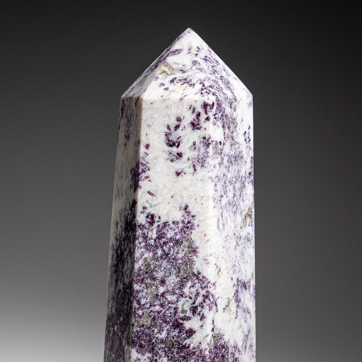 AAA quality, beautiful hand-polished six sided natural ruby point from Madagascar. It has an amazing pattern with vibrant hues of pink, white, red and black.